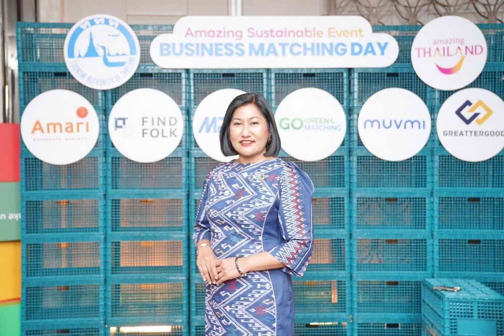 นางสาวณัฐพรรณ ตรีเดชา ผู้อำนวยการกองส่งเสริมสินค้าการท่องเที่ยว ททท. กล่าวว่า งาน Amazing Sustainable Event : Business Matching Day จัดขึ้นเพื่อตอกย้ำความมุ่งมั่นในการเสริมสร้างความแข็งแกร่งให้กับห่วงโซ่อุปทาน (Shape Supply) โดยขยายผลต่อยอดเพื่อเตรียมความพร้อมและยกระดับของผู้ประกอบการด้านการท่องเที่ยวคาร์บอนต่ำให้ไปสู่ตลาดต่างประเทศตามนโยบายของภาครัฐ ด้วยมาตรฐานการท่องเที่ยวอย่างยั่งยืน จากเป้าหมาย Sustainable Tourism Goals: STGs และโครงการ Sustainable Tourism Acceleration Rating : STAR ซึ่งจะเข้ามาเป็นกลไกสำคัญต่อการยกระดับอุตสาหกรรมท่องเที่ยวไทยสู่การเติบโตอย่างยั่งยืนและสมดุลทุกมิติ