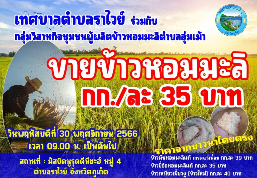 และในโอกาศเดียวกันนี้ เทศบาลตำบลราไวย์ยังได้ร่วมกับกลุ่มวิสาหกิจชุมชนผู้ผลิตข้าวหอมมะลิตำบลอุ่มเม้า นำข้าวสารชนิดต่างๆ มาจำหน่ายในราคมเพิเศษ เช่น ข้าวหอมมะลิแท้ เกรดพรีเมี่ยม กก.ละ 39 บาท ข้าวยี่จ้อหอมมะลิแท้ กก.ละ 35 บาท และข้าวเหนียวเขี้ยวงู (ข้าวใหม่) กก.ละ 40 บาท