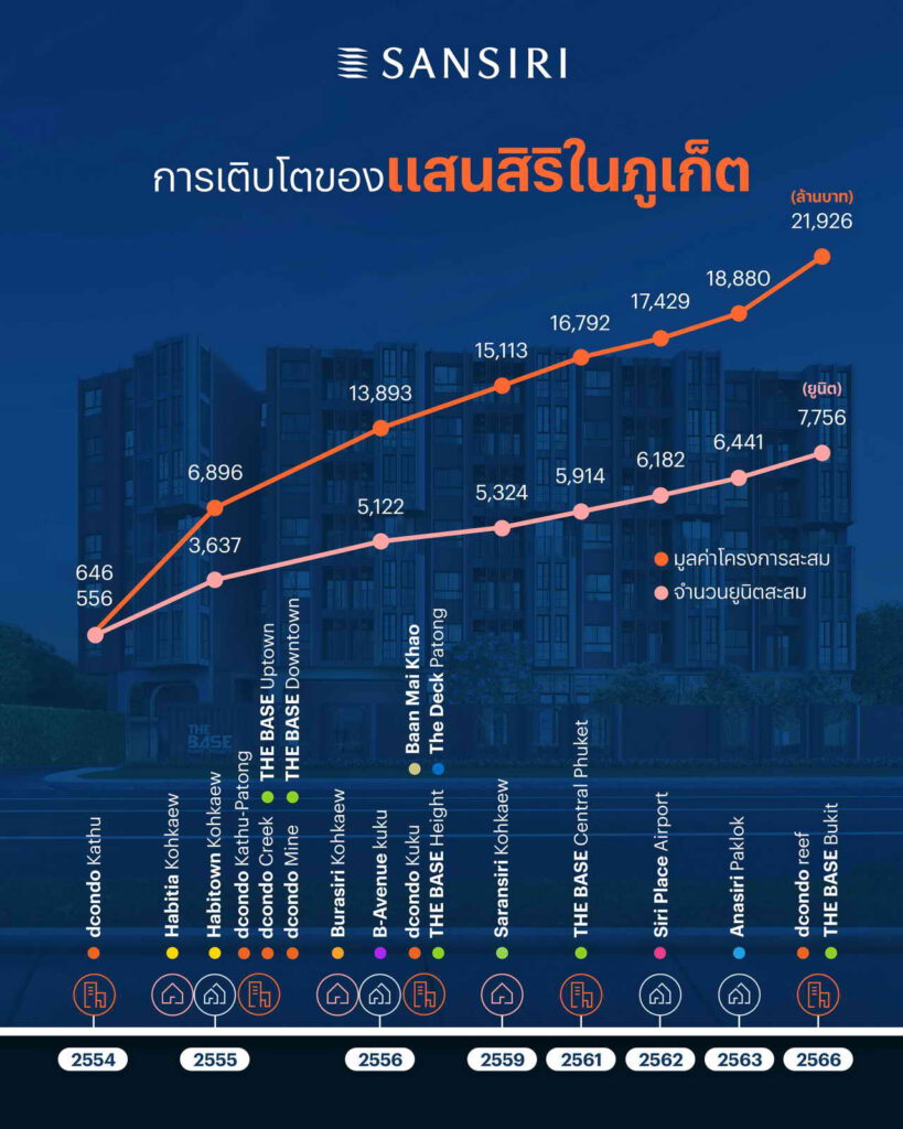 “จากข้อมูลของกระทรวงการท่องเที่ยวและกีฬา พบว่าในช่วงเดือนมกราคม – กันยายน 2566 มีนักท่องเที่ยวเดินทางเข้าภูเก็ตแล้วกว่า 8.2 ล้านคน มีรายได้รวมกว่า 2.6 แสนล้านบาท และคาดว่าเมื่อถึงสิ้นปีจะมีนักท่องเที่ยวเข้ามาภูเก็ตถึง 10 ล้านคน และมีรายได้รวมกว่า 3 แสนล้านบาท หากพิจารณาในด้านของประชากร พบว่าภูเก็ตมีประชากรในพื้นที่กว่า 1 ล้านคน (ตามทะเบียนราษฎร 400,000 คน ประชากรแฝงสูงถึง 700,000 คน) ซึ่งนอกจากจะส่งผลดีต่อภาคการท่องเที่ยวของภูเก็ตแล้ว ยังส่งผลดีต่อภาคอสังหาริมทรัพย์ให้เติบโตตามไปด้วย เห็นได้จากคอนโดมิเนียมของ แสนสิริที่มียอดจำนวนผู้พักอาศัย (Occupancy Rate) สูงมาก รวมถึงตัวเลขความสำเร็จจากการเปิดตัวตัวโครงการเดอะ เบส บูกิต ภูเก็ต (THE BASE Bukit Phuket) ที่สามารถสร้างยอดขายในช่วงพรีเซลล์ไปกว่า 50%