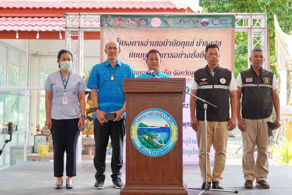 เพื่อบูรณาการความร่วมมือระหว่างภาคีเครือข่ายในการแก้ปัญหาความเดือดร้อนของประชาชนตามหลักเศรษฐกิจพอเพียง โดยมีกิจกรรม แจกถุงยังชีพจากเหล่ากาชาดจังหวัดภูเก็ต จำหน่ายไข่นายก ฟองละ 1 บาท สินค้าราคาประหยัด ตรวจสุขภาพเบื้องต้น ทำบัตรประชาชนเคลื่อนที่ บริการตัดผม ตรวจวัดสายตา มอบพันธุ์พืชการเกษตร ห้องสมุดเพลิน Learn เรียนรู้ ขอใบอนุญาตเรือประมงพื้นบ้าน ฟรีข้าวไข่เจียว ฯลฯ