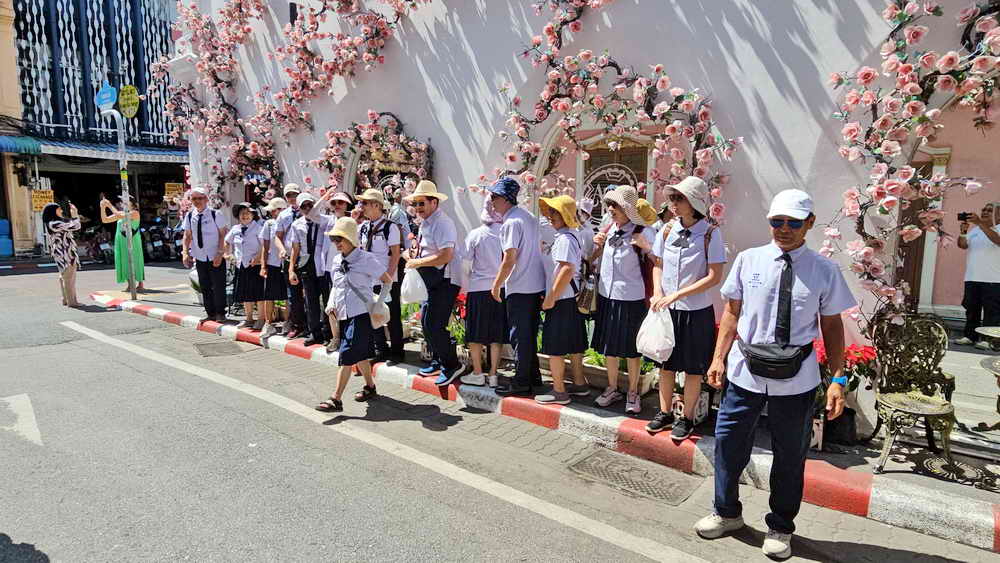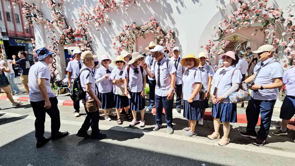นทท. สูงวัยชาวไต้หวัน ย้อนวันวานกว่า 50 ปี แต่งชุดนักเรียนเช็คอินซอยรมมณย์ – ถนนถลาง