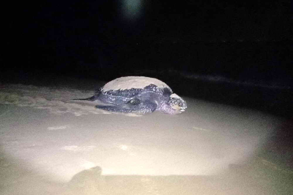 เจ้าหน้าที่อุทยานฯ พบตัวแม่เต่ามะเฟืองกำลังเดินกลับสู่ทะเล จึงสำรวจพบไข่เต่า 103 ฟอง