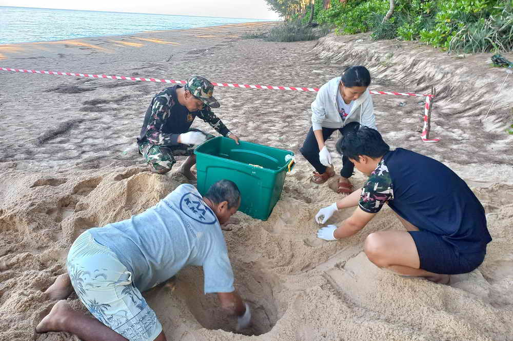 ทั้งนี้จะมีเจ้าหน้าที่ฯ คอยตรวจสอบ ดูแลป้องกัน การรบกวนจากสัตว์หรือมนุษย์อย่างต่อเนื่อง และไข่เต่าจะใช้เวลาฟักประมาณ 55 – 60 วัน อยู่ในช่วงระหว่างวันที่ 16 – 20 กุมภาพันธ์ 2567
