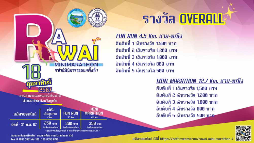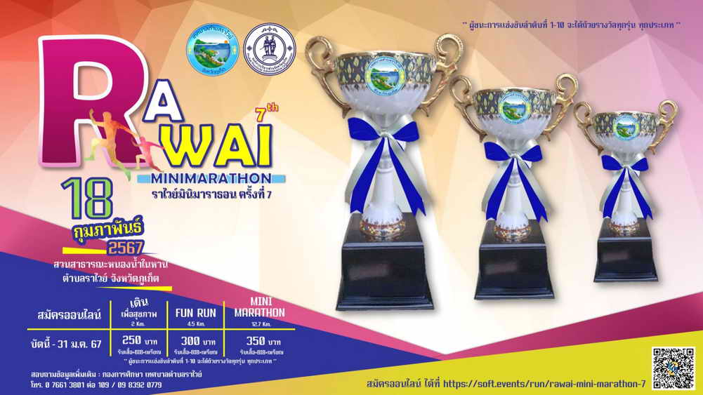 สมัครออนไลน์ ได้ที่ https://soft.events/run/rawai-mini-marathon-7