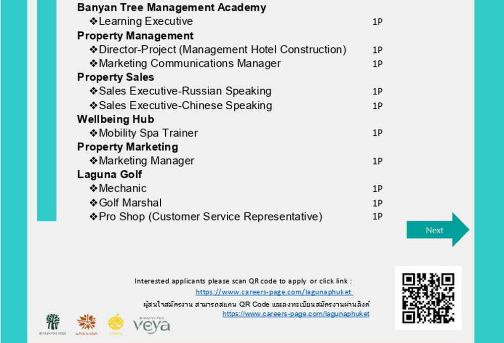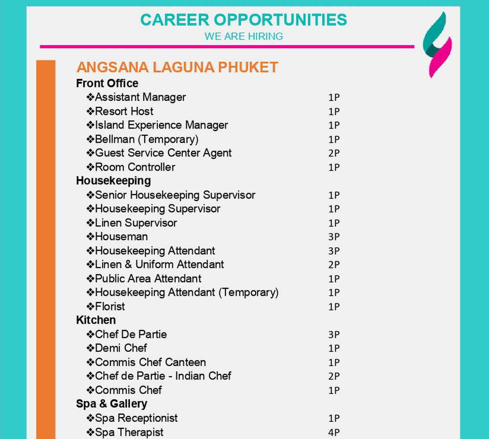 Interested applicants can apply online via https://www.careers-page.com/lagunaphuket