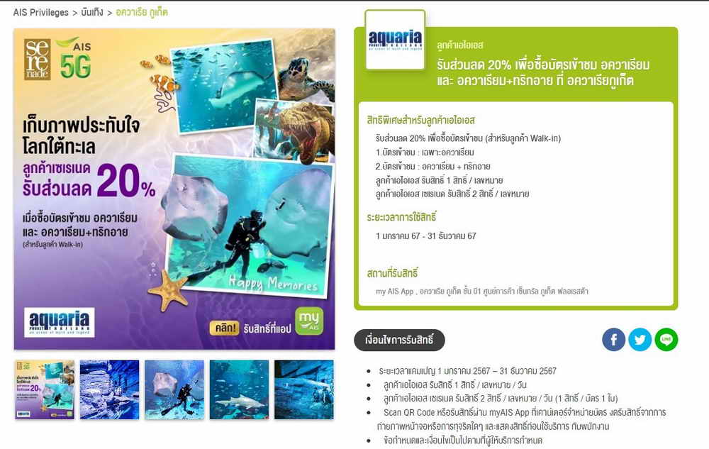 ลูกค้า AIS รับสิทธิ์พิเศษ ส่วนลด 20% ที่ อควาเรียภูเก็ต ตั้งแต่ 1 มกราคม 2567 – 31 ธันวาคม 2567