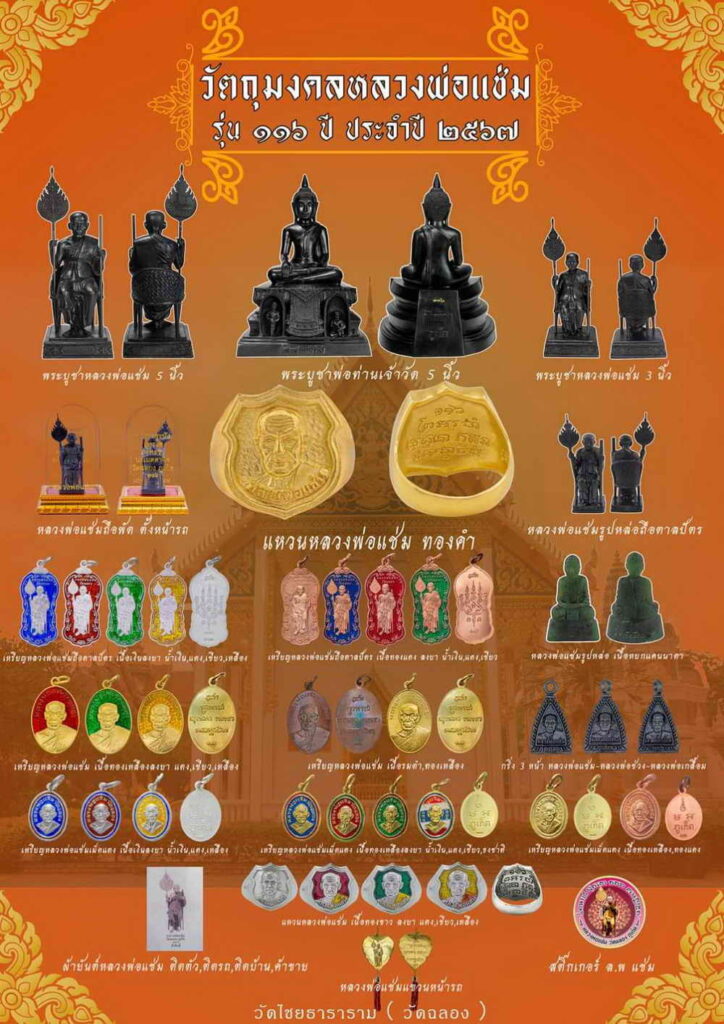 วัตถุมงคลหลวงพ่อแช่ม รุ่น 116 ปี วัดฉลอง ประจำปี 2567 ที่จะมีพิธีพุทธาภิเษก ในวันที่ 8 กุมภาพันธ์ 2567 ตั้งแต่เวลา 19.19 น.เป็นต้นไป ภายในพระอุโบสถ์ วัดไชยธาราราม วัดฉลอง ภูเก็ต