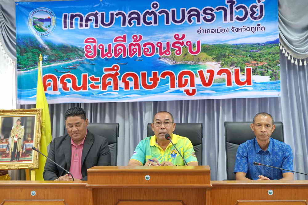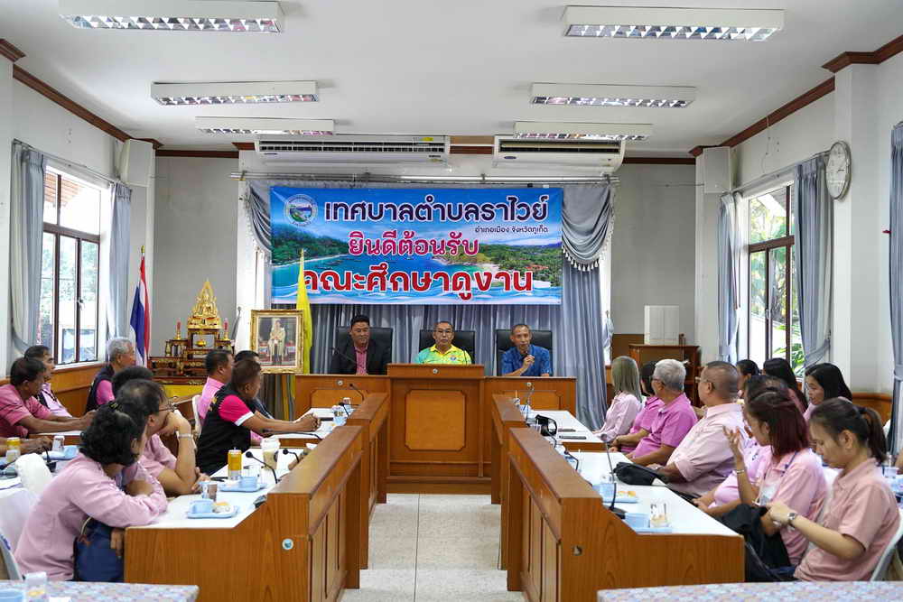 เมื่อวันที่ 26 มกราคม 2567 ที่ห้องประชุมสภาเทศบาลตำบลราไวย์ อ.เมือง จ.ภูเก็ต นายนิกร ปภากิจยศพัฒน์ รองนายกเทศมนตรี พร้อมด้วย นายปรีชา เจนณรงค์ ปลัดเทศบาลตำบลราไวย์ หัวหน้าส่วนราชการ พนักงานและเจ้าหน้าที่ เทศบาลตำบลราไวย์ ให้การต้อนรับคณะศึกษาดูงานเทศบาลตำบลบางบาล จังหวัดพระนครศรีอยุธยา เพื่อศึกษาดูงานด้านนวัตกรรมการบริหารจัดการปัญหาบ้านเมืองมาใช้ประโยชน์อย่างเป็นรูปธรรม