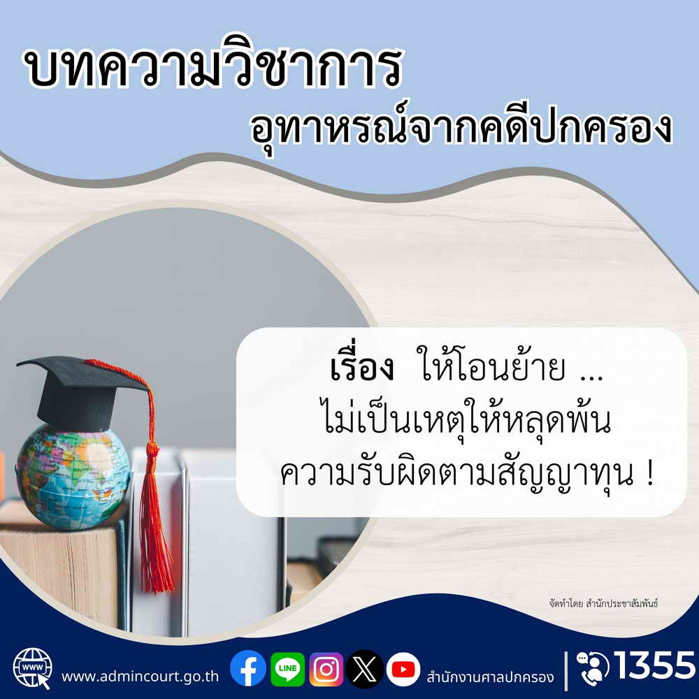 เรื่อง…..ให้โอนย้าย … ไม่เป็นเหตุให้หลุดพ้นความรับผิดตามสัญญาทุน