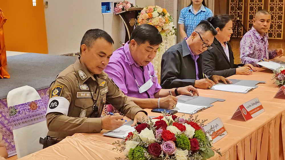 จากนั้นได้ให้มีการลงนามบันทึกข้อตกลง (MOU) ว่าด้วยความร่วมมือสนับสนุนการรณรงค์สวมหมวกนิรภัย และการมีส่วนร่วมในกิจกรรมรณรงค์การลดอุบัติเหตุทางถนน ประจำปีงบประมาณ พ.ศ.2567 ระหว่างเทศบาลตำบลวิชิต โดยนายกรีฑา โชติวิชญ์พิพัฒน์ นายกเทศมนตรีตำบลวิชิต โรงเรียนเฉลิมพระเกียรติสมเด็จพระศรีนครินทร์ ภูเก็ต โดยนางวรรณี สืบกระพันธ์ ผู้ช่วยผู้อำนวยการกลุ่มบริหารกิจการนักเรียน โรงเรียนวิชิตสงคราม โดยนางสาวอรุณี สิริเสมอภาค ผู้อำนวยการโรงเรียนวิชิตสงคราม โรงเรียนวัดเทพนิมิตร โดยนายเกษมวุฒิ แจ่มใส ผู้อำนวยการโรงเรียนวัดเทพนิมิตร โรงเรียนบ้านอ่าวน้ำบ่อ โดยนายโอภาส คงยศ ผู้อำนวยการโรงเรียนบ้านอ่าวน้ำบ่อ