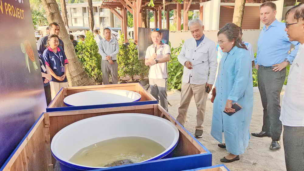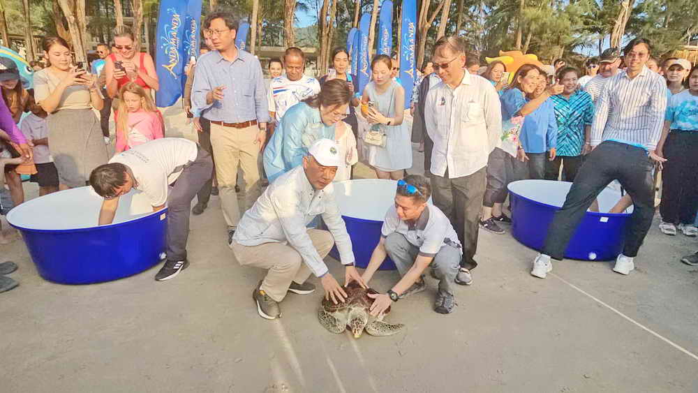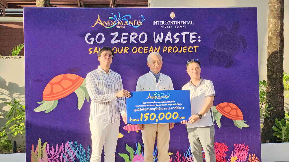 โอกาสนี้ได้มอบเงินจากการจำหน่ายผลิตภัณฑ์รักษ์โลก และการร่วมบริจาคสมทบ จำนวน 150,000 บาท ให้กับมูลนิธิเพื่อการอนุรักษ์เต่าทะเล หาดไม้ขาว เพื่อนำไปดูแลเต่าทะลที่ได้รับบาดเจ็บ และร่วมกันปล่อยเต่าตะนุบาดเจ็บซึ่งรับการดูแลจนแข็งแรงกลับลงสู่ทะเล จำนวน 3 ตัว ประกอบด้วย “บอบซ์” อายุ 1 ปี 10 เดือน มีปัญหากระดองผิดรูป, ชินี่ อายุ 2 ปี 9 เดือน มีปัญหาขาหลังผิดรูป และ “แซมมี่” อายุ 2 ปี 9 เดือน มีปัญหาขาหลังขยับผิดรูป นอกจากนี้ “สวนน้ำอันดามันดา ภูเก็ต” ยังได้จัดนิทรรศการ CSR :Go Zero Waste Save Our Ocean Project 2024 รวมทั้งนำผลิตภัณฑ์รีไซเคิล และผลิตภัณฑ์สินค้าชุมชนที่นำไปวางจำหน่ายภายในสวนน้ำฯ มาจัดแสดงและจำหน่ายให้ผู้ร่วมกิจกรรมในครั้งนี้ด้วย