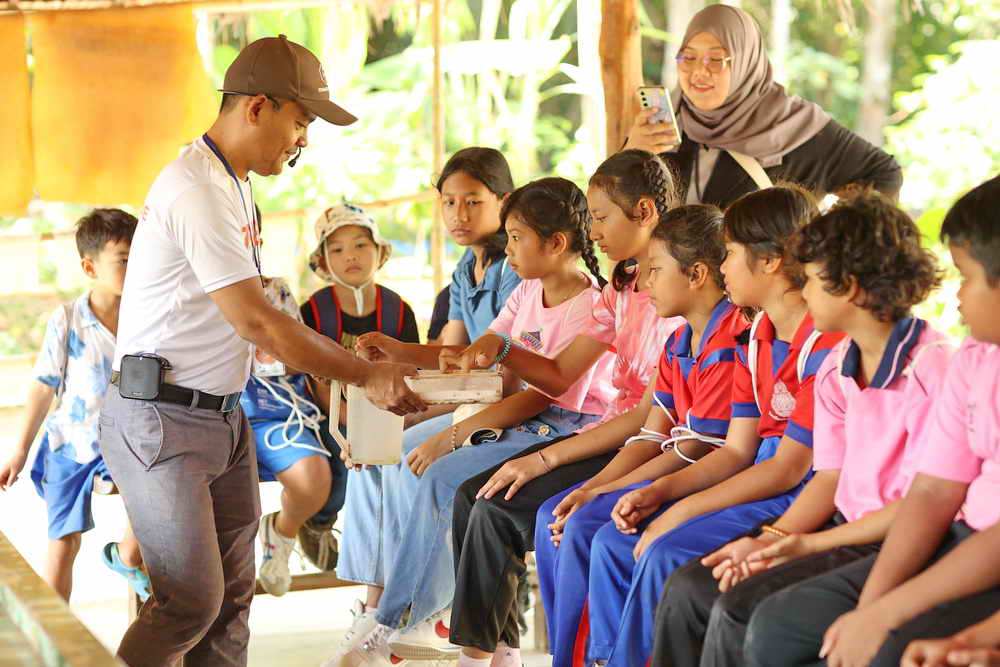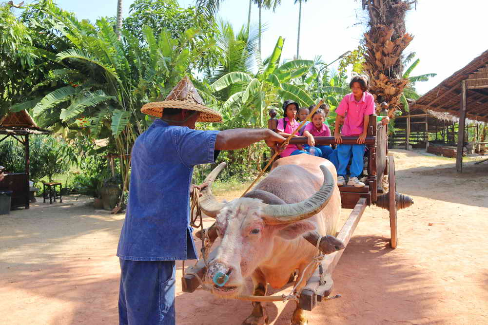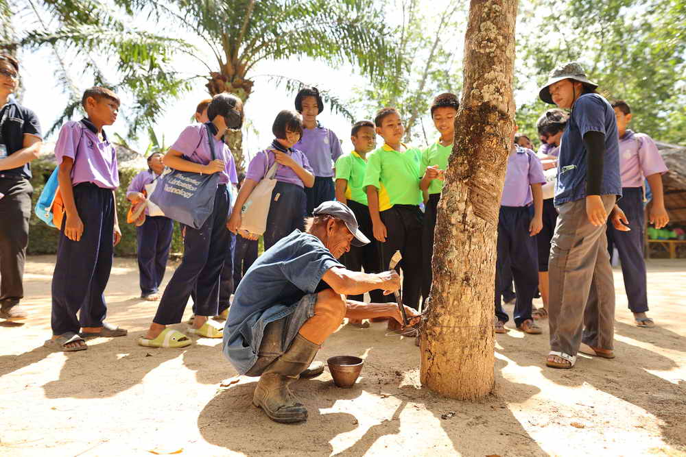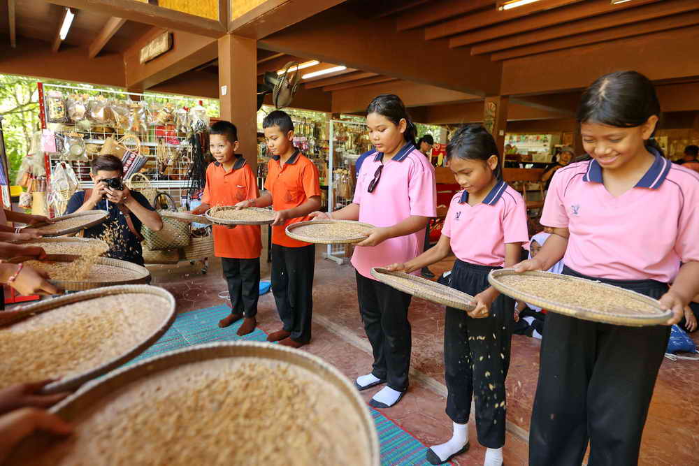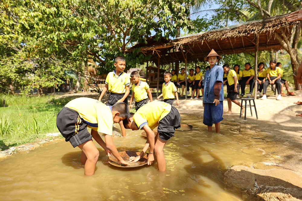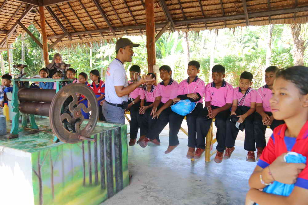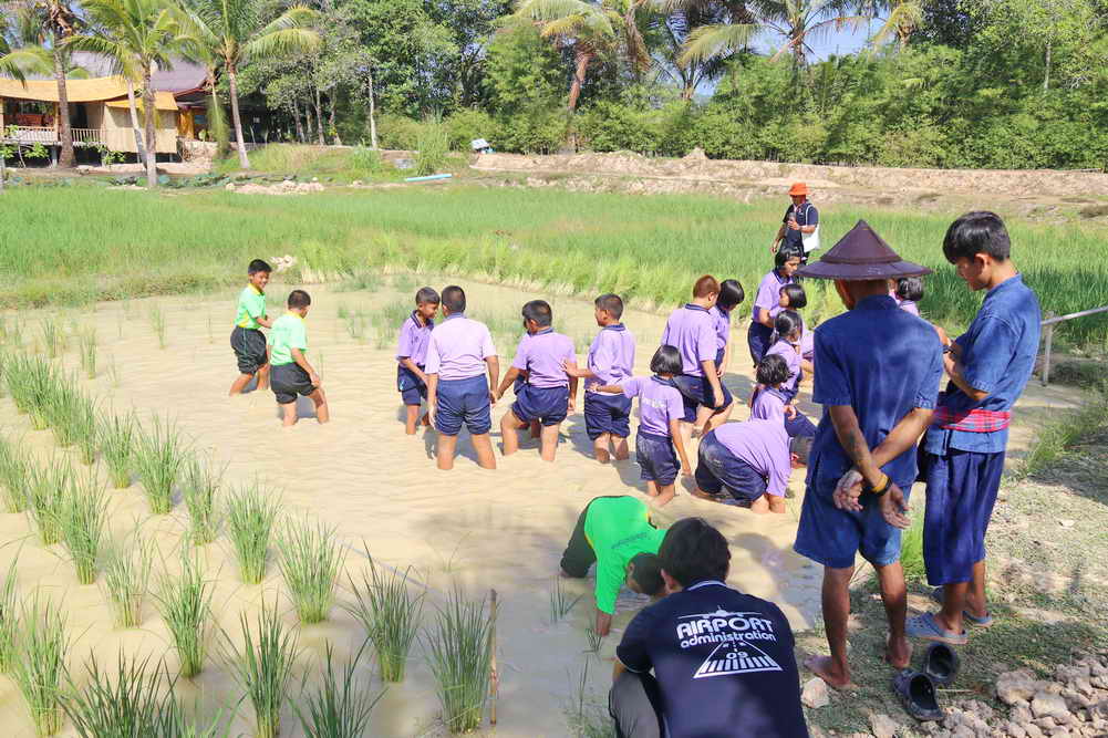 จากนั้นทางคณะก็ได้เดินทางไปยังศูนย์การเรียนรู้ Old Phuket Farm ต.เทพกระษัตรี อ.ถลาง จ.ภูเก็ต ในการสัมผัสวิถีการทำนาข้าว การกรีดยางพารา การร่อนแร่ท้ายราง การทำสวนสับปะรด และเข้าชมบ้านเรือนไทย เพื่อสร้างจิตสำนึก การอนุรักษ์วัฒนธรรม วิถีชีวิตภูมิปัญญาดั้งเดิมของชาวภูเก็ต