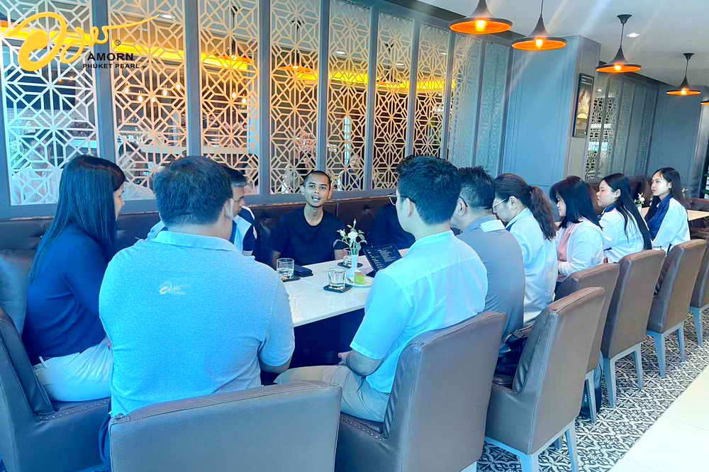 เมื่อเร็วๆ นี้ ที่โชว์รูมและโรงงาน อมร ภูเก็ตเพิร์ล บ้านสะปำ อ.เมือง ภูเก็ต นางสาวรัตติกรณ์ อินทรเจริญ ผู้บริหาร อมร ภูเก็ตเพิร์ล พร้อมด้วยเจ้าหน้าที่ อมร ภูเก็ตเพิร์ล ให้การต้อนรับคณะจาก สำนักงานส่งเสริมวิสาหกิจขนาดกลางและขนาดย่อม หรือ สสว. นำโดยนายปริญญา เลื่อนชิด รองผอ.ฝ่ายวิเคราะห์สถานการณ์และเตือนภัยเศรษฐกิจ และนายราชันย์ ชาติสุทธิ์ ผจก.ศูนย์กลุ่มจังหวัดให้บริการ SMEs ครบวงจรภาคใต้ฝั่งอันดามันจังหวัดภูเก็ต และคณะเจ้าหน้าที่ ที่เข้าสัมภาษณ์ การดำเนิงานของ “อมร ภูเก็ตเพิร์ล”