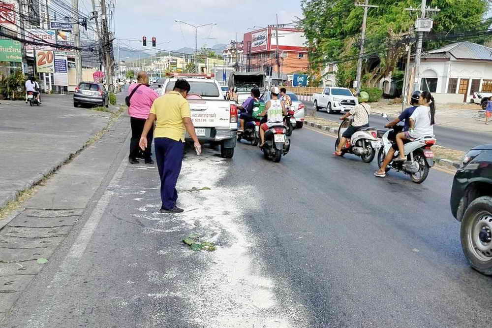 เมื่อวันที่ 09 เมษายน 2567 งานป้องกันและบรรเทาสาธารณภัยเทศบาลตำบลวิชิต ได้รับแจ้งจากชาวบ้านว่า มีน้ำมันรั่วไหลหกบนถนน บริเวณตลาดมุมเมือง จึงจัดกำลัง จนท.ศูนย์บรรเทา ออกปฎิบัติการ์ โดยการนำปูนขาวกลบคราบน้ำมันเป็นที่เรียบร้อย เพื่อป้องกันอุบัติเหตุซ้ำซ้อนแก่ผู้ใช้ถนน