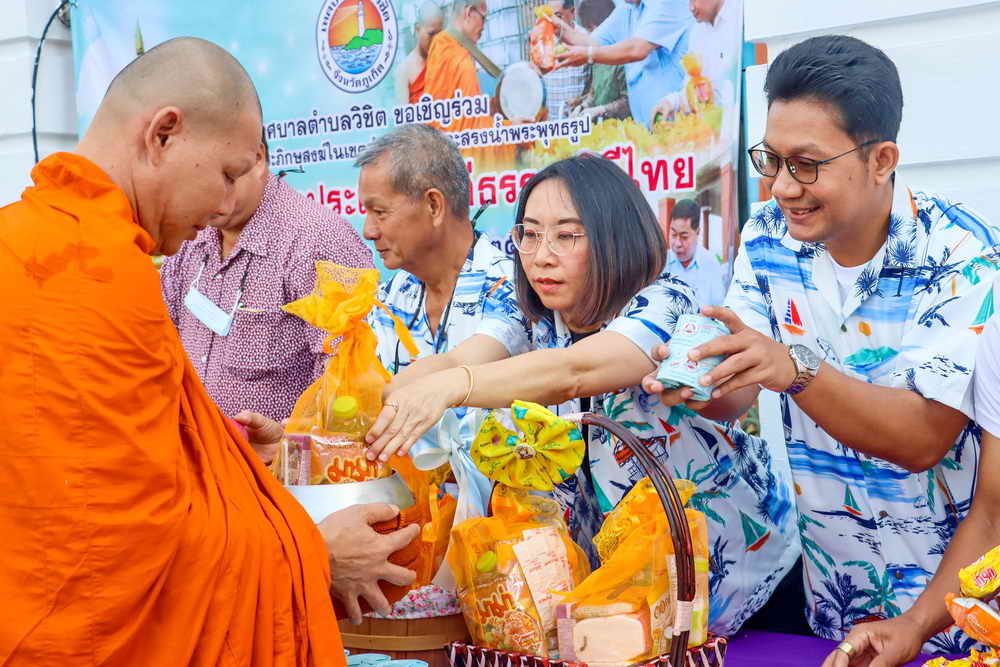 เมื่อวันที่ 11 เมษายน 2567 ที่บริเวณณหน้าสถานธนานุบาลเทศบาลตำบลวิชิต ด้านข้างสำนักงานเทศบาลตำบลวิชิต อ.เมือง ภูเก็ต นายกรีฑา โชติวิชญ์พิพัฒน์ นายกเทศมนตรีตำบลวิชิต พร้อมด้วยฝ่ายบริหาร สมาชิกสภาเทศบาลตำบลวิชิต หัวหน้าส่วนราชการ พนักงานเทศบาลตำบลวิชิต และพุทธศาสนิกชนชาวตำบลวิชิต ร่วมโครงการสืบสานประเพณีวิถีธรรม วิถีไทย ประจำปี 2567