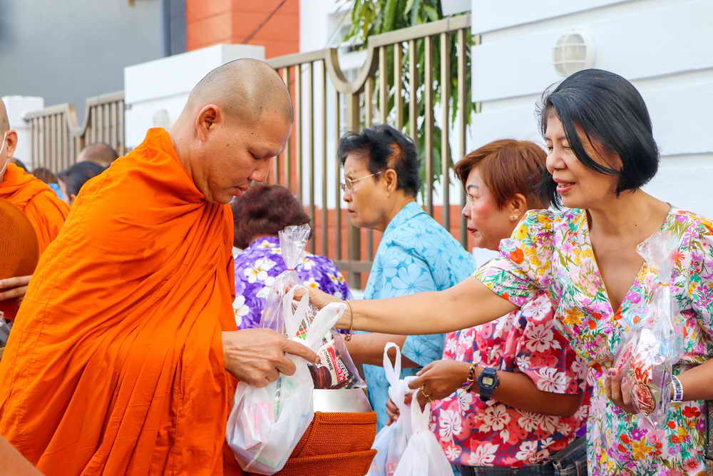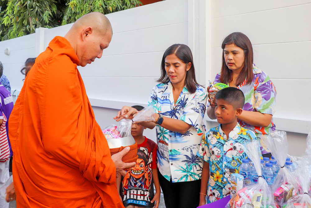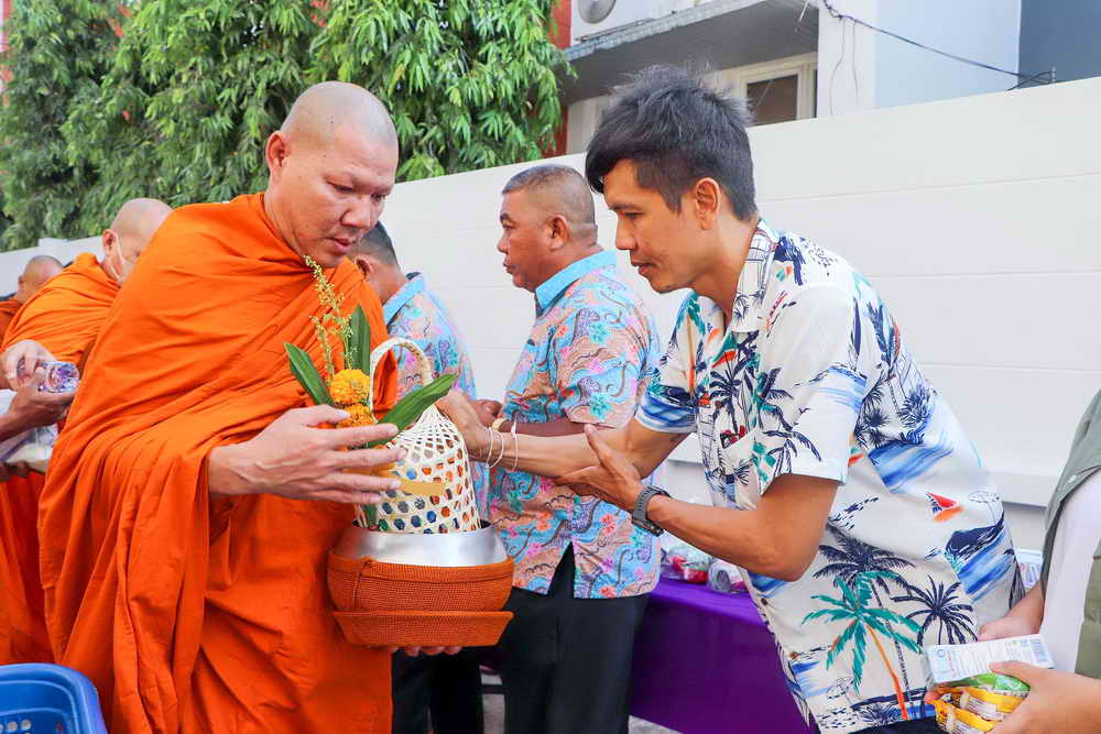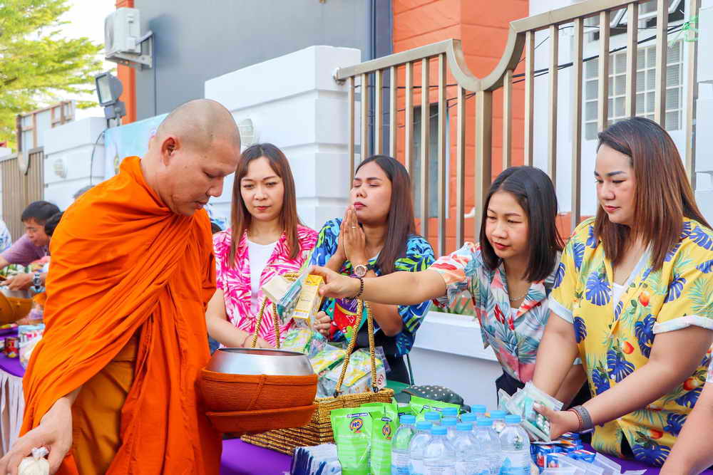 ด้วยการทำบุญตักบาตรพระสงฆ์ จำนวน 19 รูป และร่วมสรงน้ำพระพุทธรูป เพื่อความเป็นสิริมงคล เนื่องในเทศกาลสงกรานต์ ประจำปี 2567 โดยบรรยากาศเป็นไปด้วยความเรียบร้อย มีประชาชนในพื้นที่ นำข้าวสาร อาหารแห้งมาร่วมพิธีทำบุญตักบาตรเป็นจำนวนมาก