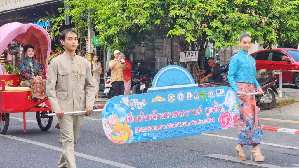 ทั้งนี้ก่อนเปิดงานอย่างเป็นทางการ ได้มีขบวนแห่มหาสงกรานต์ ซึ่งนางสงกรานต์ประจำปี 2567 คือ มโหธรเทวี โดย “ทาริน่า โบเทส“ Miss Thailand World 2024 สวมชุดเคบายา นุ้งผ้าปาเต๊ะ พร้อมด้วยนางสงกรานต์ประจำวันต่างๆ ไปตามถนนสายต่างๆ ในย่านเมืองเก่าภูเก็ต ได้รับความสนใจจากนักท่องเที่ยวทั้งชาวไทยและต่างประเทศตลอดเส้นทางที่ขบวนแห่ผ่าน