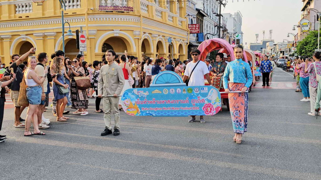 ทั้งนี้ก่อนเปิดงานอย่างเป็นทางการ ได้มีขบวนแห่มหาสงกรานต์ ซึ่งนางสงกรานต์ประจำปี 2567 คือ มโหธรเทวี โดย “ทาริน่า โบเทส“ Miss Thailand World 2024 สวมชุดเคบายา นุ้งผ้าปาเต๊ะ พร้อมด้วยนางสงกรานต์ประจำวันต่างๆ ไปตามถนนสายต่างๆ ในย่านเมืองเก่าภูเก็ต ได้รับความสนใจจากนักท่องเที่ยวทั้งชาวไทยและต่างประเทศตลอดเส้นทางที่ขบวนแห่ผ่าน