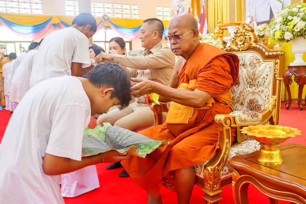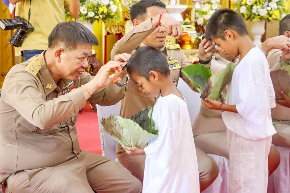 โดยมีหัวหน้าส่วนราชการ ข้าราชการ กำนัน ผู้ใหญ่บ้าน จิตอาสาพระราชทาน และผู้ปกครองผู้เข้าร่วมโครงการบรรพชาสามเณรภาคฤดูร้อน เข้าร่วมพิธี