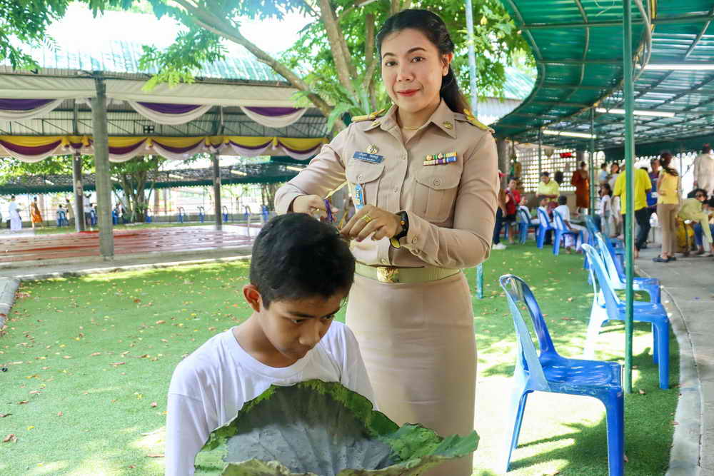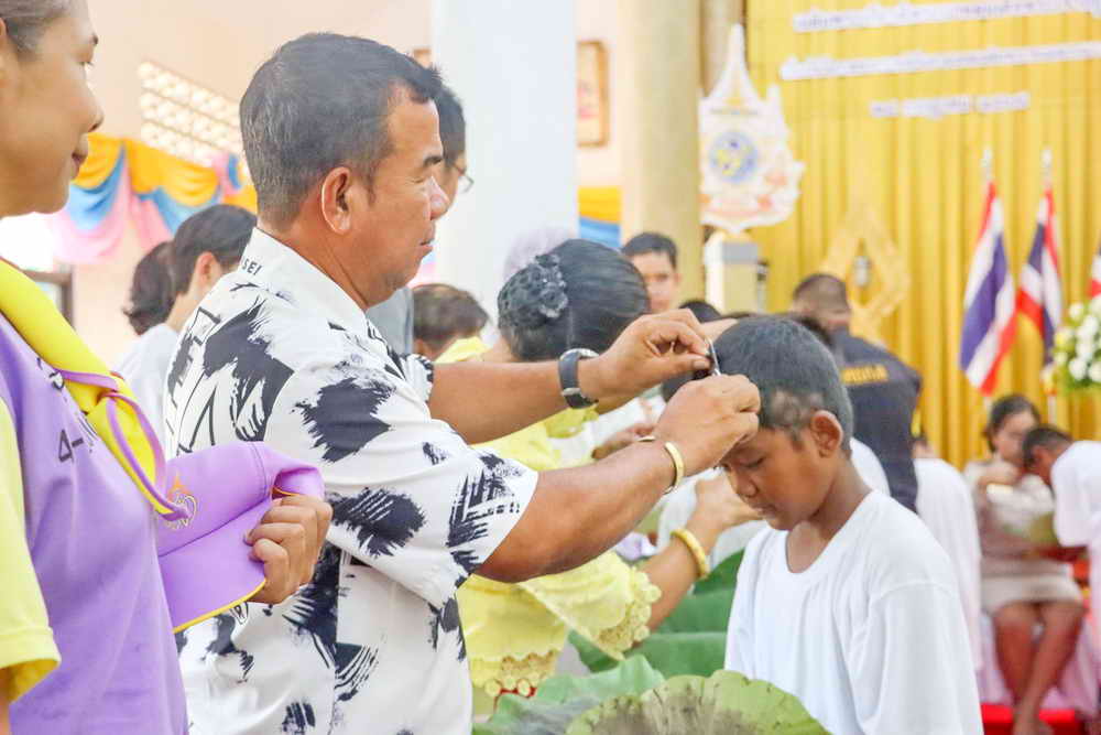 พร้อมด้วยนางสาวเพ็ญพร วิชัยดิษฐ์ หัวหน้าฝ่ายส่งเสริมการศึกษา ศาสนา และวัฒนธรรม และเจ้าหน้าที่กองการศึกษา เทศบาลตำบลวิชิต เข้าร่วมพิธีปลงผม ในโครงการบรรพชาสามเณรภาคฤดูร้อน เฉลิมพระเกียรติพระบาทสมเด็จพระเจ้าอยู่หัว เนื่องในโอกาสมหามงคลเฉลิมพระชนมพรรษา 6 รอบ 28 กรกฎาคม 2567