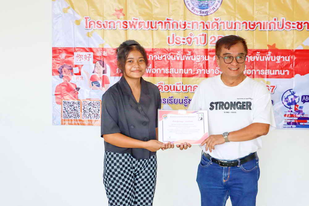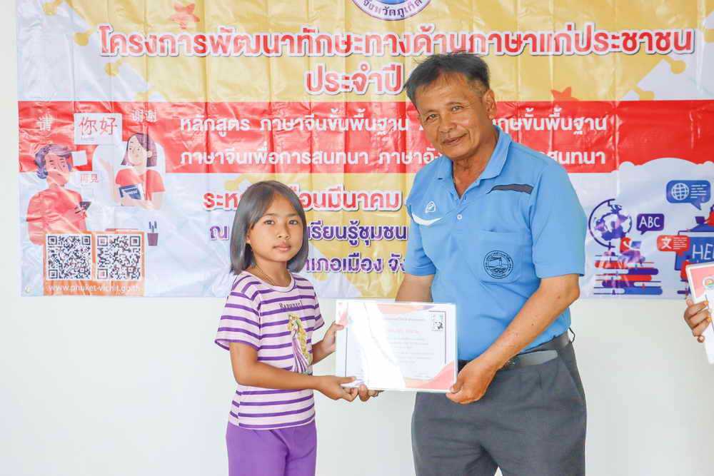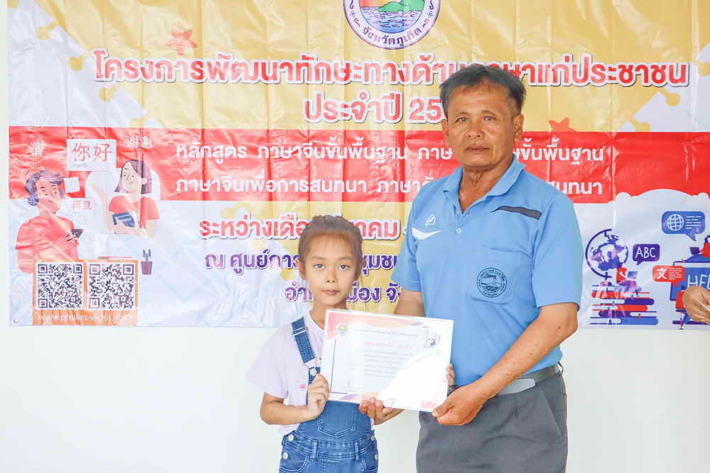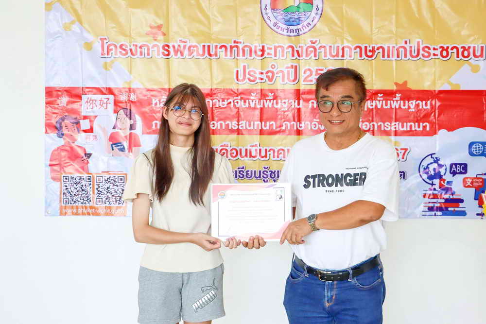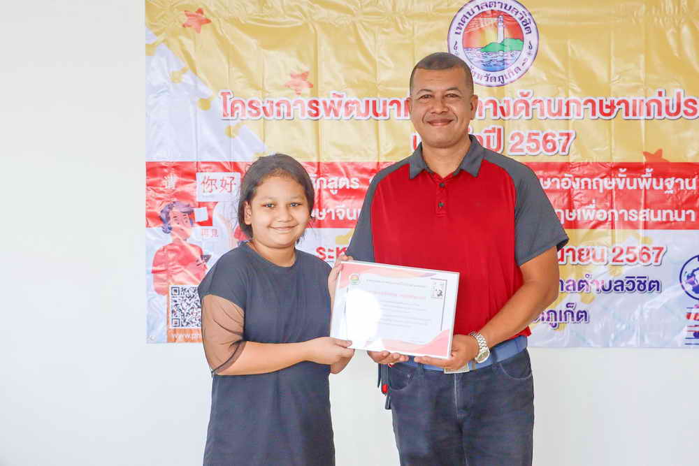 เมื่อวันที่ 26 เมษายน 2567 ที่ศูนย์การเรียนรู้เทศบาลตำบลวิชิต หมู่ที่ 1 ตำบลวิชิต อำเภอเมืองภูเก็ต จังหวัดภูเก็ตนายสสมศักดิ์ บุญแก้ว นายเอกพล หาทรัพย์ นายจีรศักดิ์ เก็บทรัพย์ นายจิรันธนิน ศรีสกุลจรัส และนายสมพร โสตถิรวราภรณ์ สมาชิกสภาเทศบาลตำบลวิชิต ได้ร่วมมอบเกียรติบัตรให้กับน้องๆ ที่เข้าร่วมโครงการพัฒนาทักษะทางด้านภาษาแก่ประชาชน ปี 2567 หลักสูตรสำหรับเด็ก (7 – 12 ปี) ภาษาจีนขั้นพื้นฐาน และภาษาอังกฤษขั้นพื้นฐาน ที่ได้เปิดการอบรมมาในระหว่างวันที่ 1 – 26 เมษายน 2567