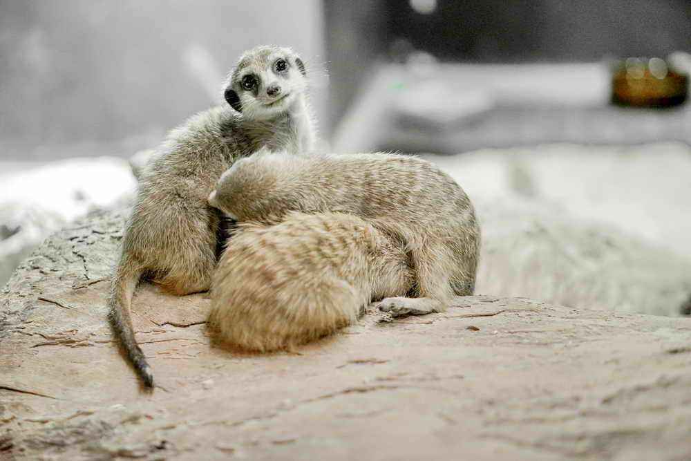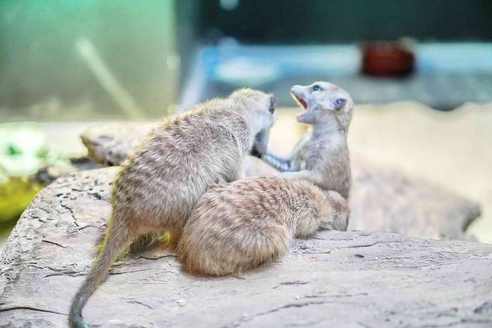 Meerkats’ hearing ability can hear sounds up to 160 feet (50 meters) away and will migrate when in danger. Meerkat burrows are deep underground. The earthen burrows created can be connected together. This creates more entrances and exits and helps provide escape routes when danger comes. at Aquaria Phuket floor B1 Central Floresta