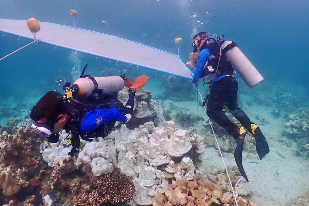เมื่อวันที่ 17 พฤษภาคม 2567 ที่บริเวณแนวปะการัง ด้านทิศตะวันออกของเกาะไม้ท่อน อำเภอเมือง จังหวัดภูเก็ต กองอนุรักษ์ทรัพยากรทางทะเล ร่วมกับ ศูนย์วิจัยทรัพยากรทางทะเลและชายฝั่งทะเลอันดามันตอนบน และเจ้าหน้าที่โรงแรมเกาะไม้ท่อน ดำเนินการติดตั้งม่านลดแสง (Shading)