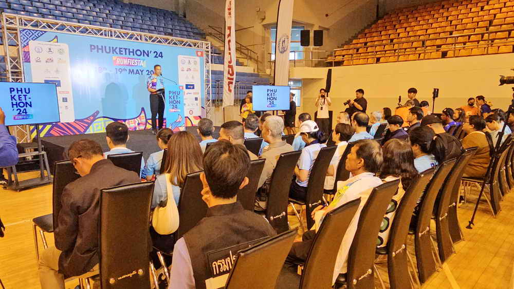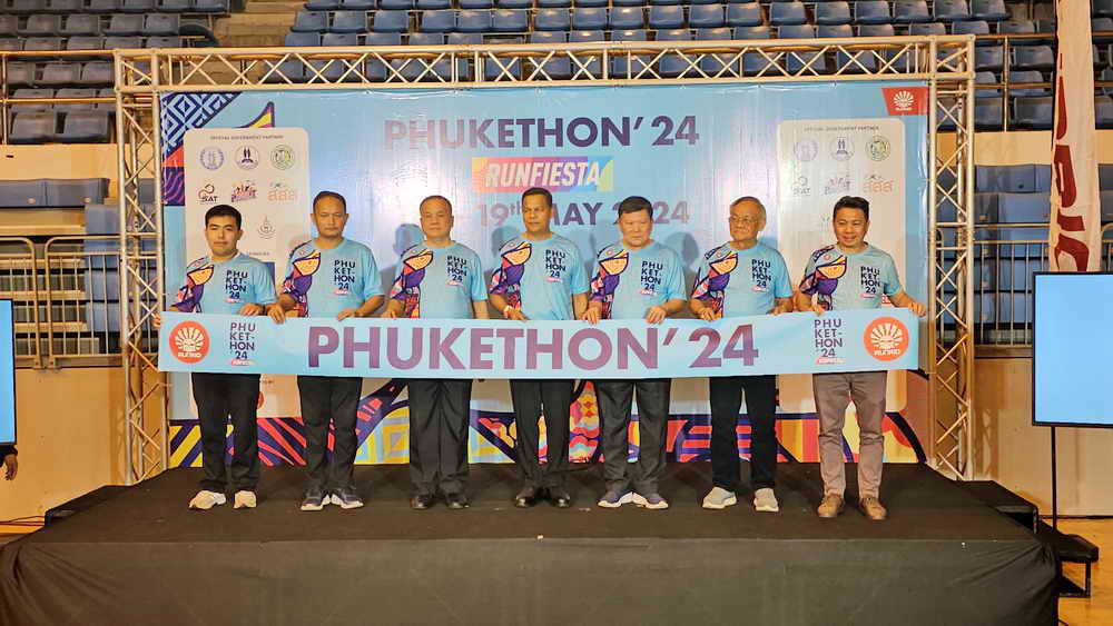 เมื่อวันที่ 17 พฤษภาคม 2567 ณ อาคารยิมเนเซียม 4,000 ที่นั่ง ศูนย์กีฬาสะพานหิน อ.เมือง จ.ภูเก็ต นายกองเอก อดุลย์ ชูทอง รองผู้ว่าราชการจังหวัดภูเก็ต เป็นประธาน แถลงข่าวการจัดเทศกาลวิ่งระดับนานาชาติ “Phukethon 2024 Run Fiesta” โดยมีนายเรวัต อารีรอบ นายกองค์การบริหารส่วนจังหวัดภูเก็ต, นายประสิทธิ์ สินเสาวภาคย์ รองนายกเทศมนตรีนครภูเก็ต, พล.ต.อาณัติ รัตนพล ประธานฝ่ายเทคนิคสมาคมกีฬากรีฑาแห่งประเทศไทยฯ, นายดำรง ไชยเสนา ผู้อำนวยการ สำนักงานการกีฬาแห่งประเทศไทย จังหวัดภูเก็ต, พันธมิตรทั้งภาครัฐ ภาคเอกชนจำนวนกว่า 10 องค์กร และ Brand Ambassador เข้าร่วม