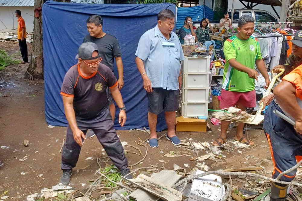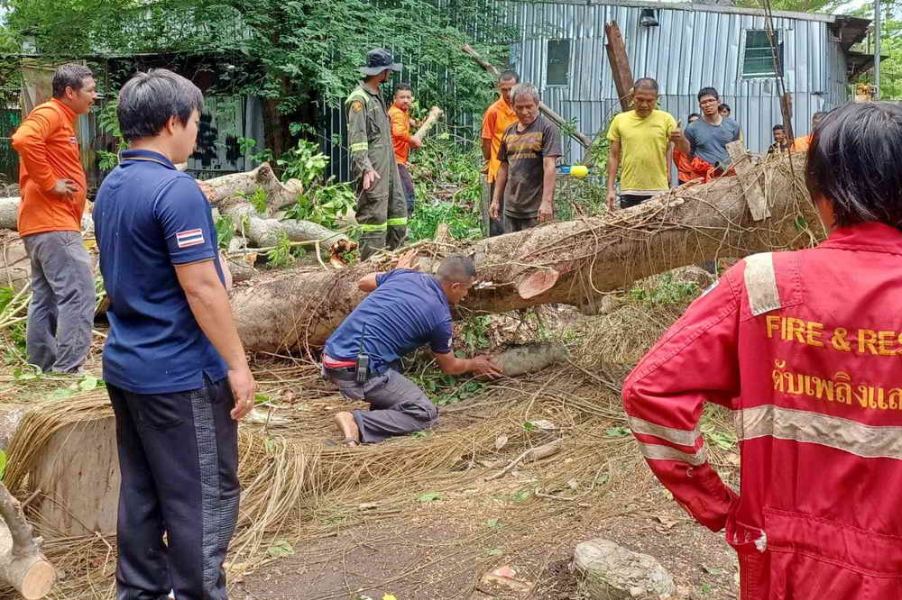 และยังพบว่ารากต้นไม้ผุทั้ง 2 ต้น โดยขณะนี้เจ้าหน้าที่กำลังดำเนินการตัดไม้ออกเป็นท่อนเพื่อให้สะดวกในการเคลื่อนย้ายออกนอกจุดเกิดเหตุ พร้อมทั้งได้ประเมินความเสียหาย เพื่อหาแนวทางให้ความช่วยเหลือบ้านเรือนที่ประสบเหตุต่อไป