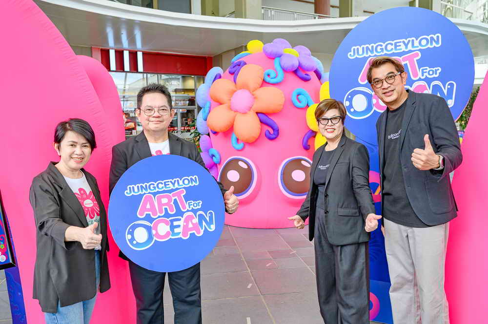 นายประวิช จรรยาสิทธิกุล ประธานเจ้าหน้าที่บริหาร ศูนย์การค้าจังซีลอน พร้อมด้วย นางสาวทัศนีย์ เทพประเสริฐวังศา ประธานเจ้าหน้าที่บริหารสายการตลาด ศูนย์การค้าจังซีลอน ร่วมกับ วรสรวง สมัตถพันธุ์ ผู้บริหารบริษัทบอลลูนอาร์ท จำกัด และจิรฐา โลหะพรหม กรรมการผู้จัดการบริษัทบอลลูนอาร์ท จำกัด ร่วมกันจัดงาน “JUNGCEYLON ART FOR OCEANS” งานศิลปะเพื่อมหาสมุทร