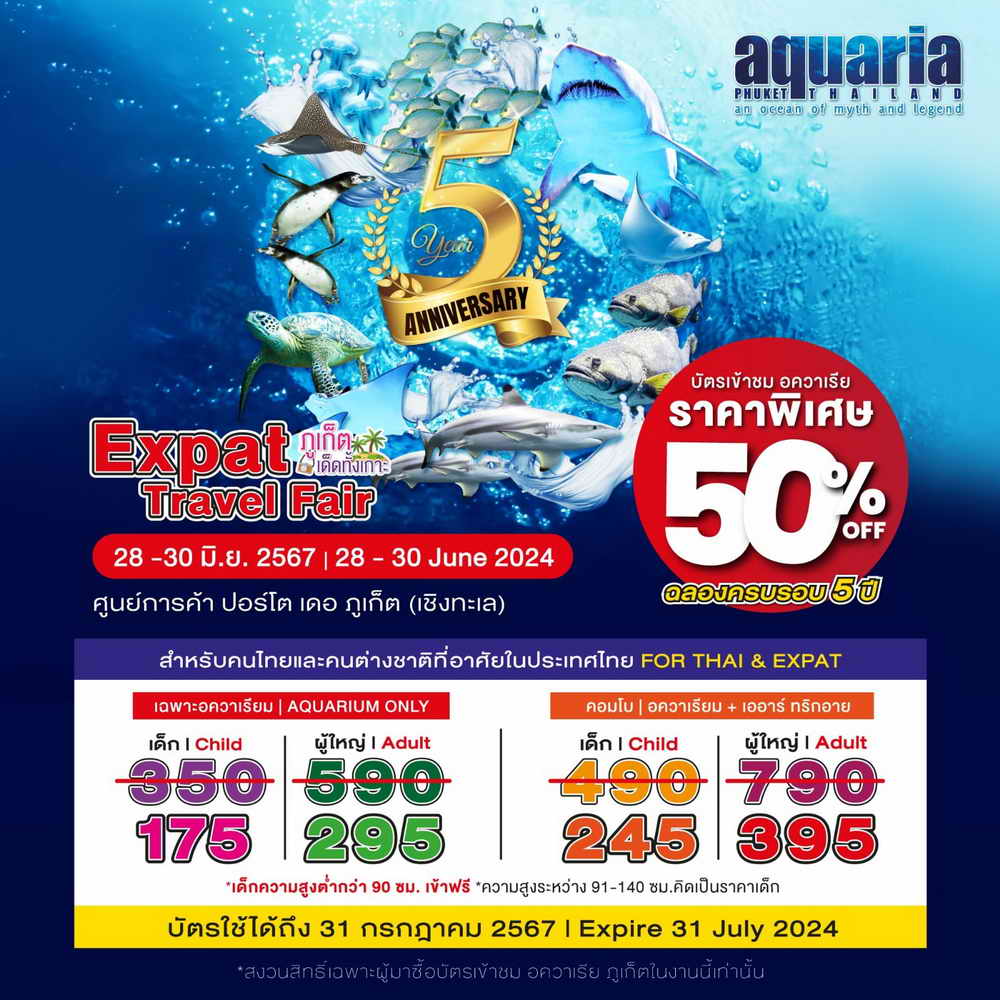 Expat travel fair 2024 get special discount for all Expat 50% off, ticket expiration for 30 days, only on 28-30 June, non maximum ticket for this event, see you at Porto de Phuket 11am- 8pm