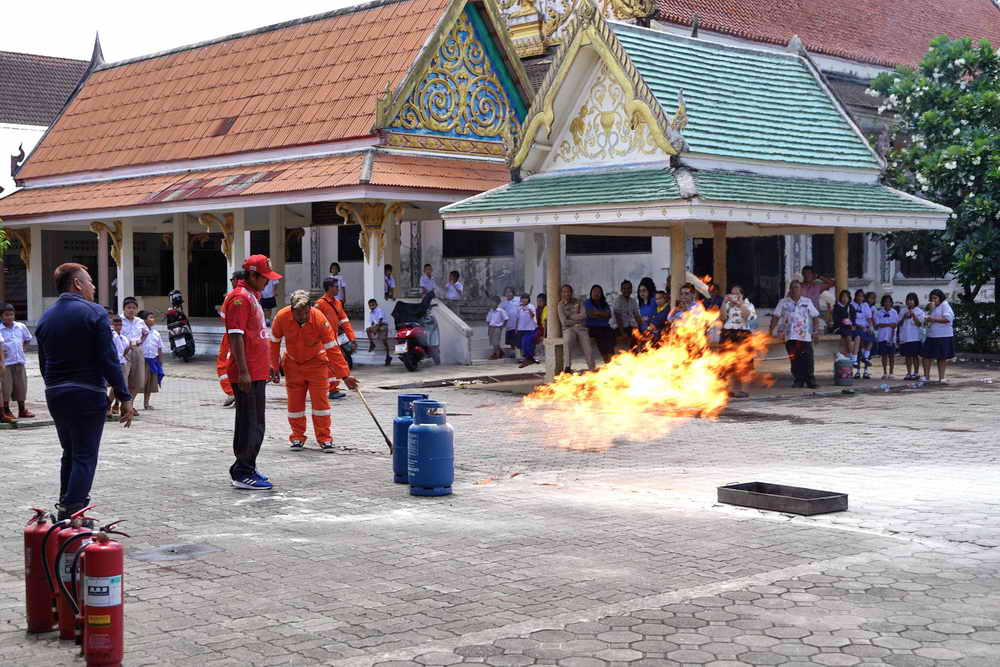 ทต.ราไวย์ ฝึกอบรมการป้องกันและระงับอัคคีภัยเบื้องต้น ให้กับพระสงฆ์และนักเรียน
