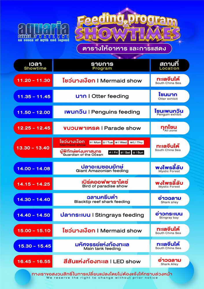 Our Showtime for daily Aquaria Phuket floor B1 Central Floresta