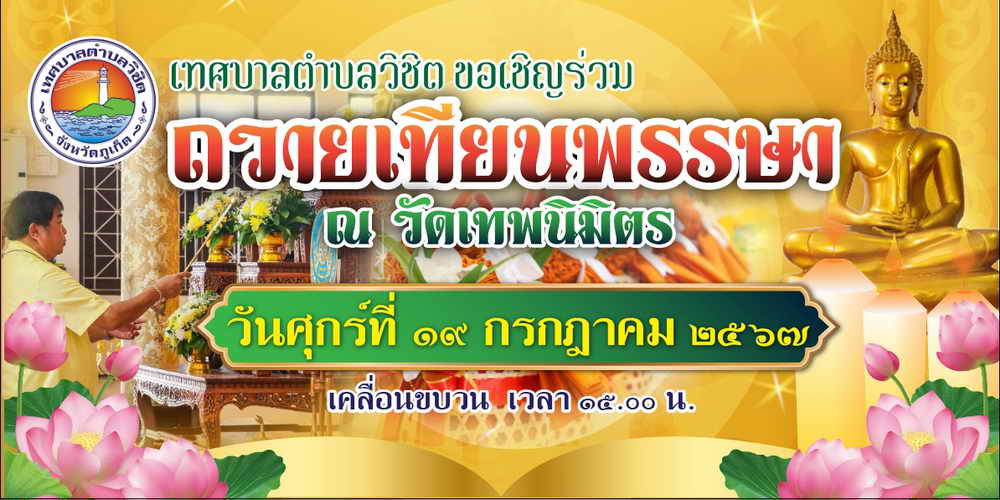ด้วยทางเทศบาลตำบลวิชิตจะจัดให้มีขบวนแห่เทียนพรรษา และถวายเทียนพรรษา ณ วัดเทพนิมิตร ในวันศุกร์ที่ 19 กรกฎาคม 2567
