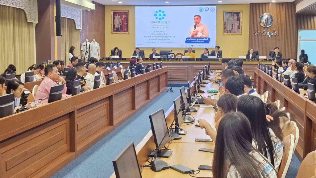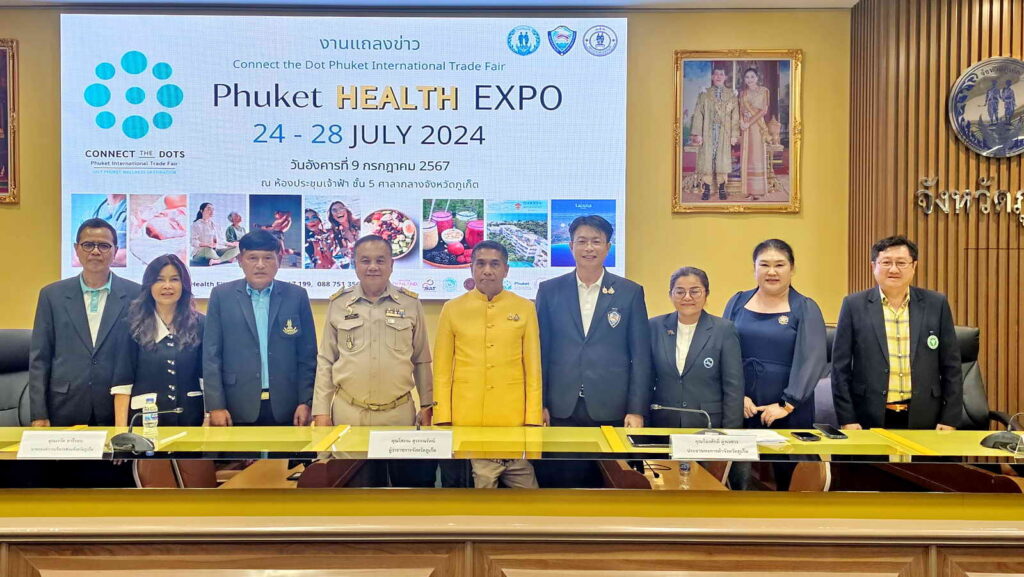 พร้อมเครือข่าย ได้ร่วมกันแถลงข่าวการจัดงาน Connect the Dot Phuket International Trade Fair “Phuket Health Expo” ซึ่งกำหนดจัดงานระหว่างวันที่ 24 – 28 กรกฎาคม 2567 ณ เซ็นทรัล เฟสติวัล ภูเก็ต โดยมีหน่วยงานภาครัฐ เอกชน และองค์กรต่างๆ เข้าร่วม