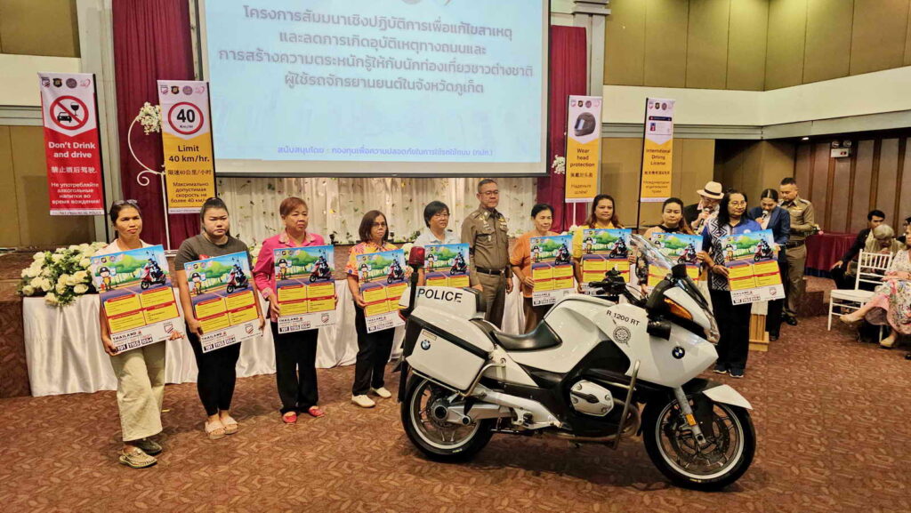 ข้อมูลจากนักท่องเที่ยวชาวต่างชาติที่ประสบอุบัติเหตุทางถนน พบว่าผู้ประกอบการรถเช่าไม่ได้ชี้แจงหรือบอกข้อบังคับในการใช้รถ นอกจากนี้ยังมีการยินยอมให้นักท่องเที่ยวที่ไม่มีใบอนุญาตขับรถ สามารถเช่ารถไปขับขี่ได้ จึงจัดทำโครงการ “สัมมนาเชิงปฏิบัติการเพื่อแก้ไขสาเหตุและลดการเกิดอุบัติเหตุทางถนนและการสร้างความตระหนักรู้ให้กับนักท่องเที่ยวชาวต่างชาติผู้ใช้รถจักรยานยนต์ในจังหวัดภูเก็ต” ขึ้นดังกล่าว