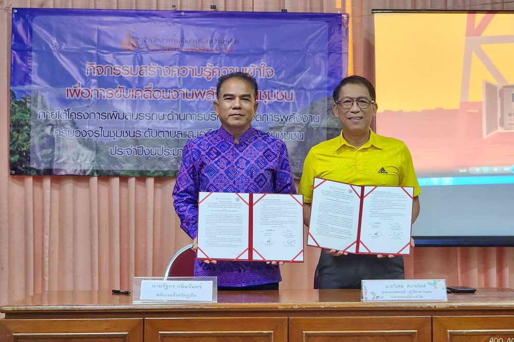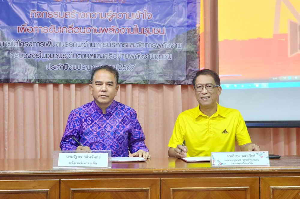 โดยในโครงการฯ ได้มีการลงนามบันทึกข้อตกลง MOU ความร่วมด้านพลังงาน ซึ่งมีนายวิเศษ สบายจิตต์ รองปลัดเทศบาลตำบลวิชิต และนายรัฐกร กลิ่นจันทร์ พลังงานจังหวัดภูเก็ต ร่วมลงนามบันทึกข้อตกลง พร้อมทั้งได้มีการอบรมให้ความรู้ด้านพลังงาน และWork Shop การจัดทำแผนพลังงานชุมชน แก่ชุมชนในพื้นที่ตำบลบวิชิต