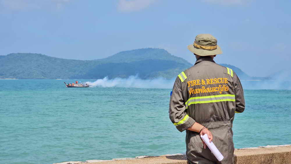 โดยมีนายกรีฑา โชติวิชญ์พิพัฒน์ นายกเทศมนตรีตำบลวิชิต ศูนย์ป้องกันและบรรเทาสาธารณภัย เขต 18 จังหวัดภูเก็ต พล.ร.ต.ภุชงค์ รอดนิกร รองผู้บัญชาการทัพเรือภาคที่ 3 นายประสิทธิ์ สินเสาวภาคย์ รองนายกเทศมนตรีนครภูเก็ต นายชัยยะ สิทธิกุล รองนายกเทศมนตรีเมืองกะทู้ นายอำนวย พรหมเรือง ผู้อำนวยการส่วนสนับสนุนทรัพยากรกู้ภัย ศูนย์ ปภ.เขต 18 ภูเก็ต นายภิญญา สุโภชนาถ หัวหน้าฝ่ายป้องกันและบรรเทาสาธารณภัย มูลนิธิกุศลธรรมภูเก็ต
