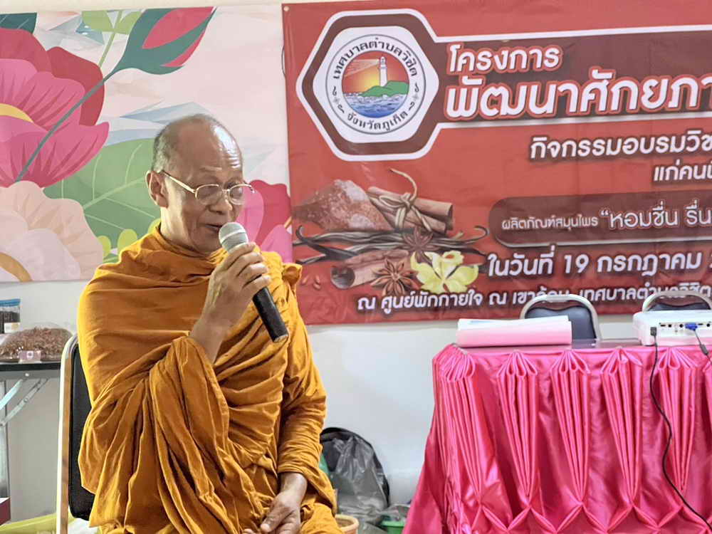เมื่อวันที่ 19 กรกฎาคม 2567 ที่ศูนย์พักกายใจ ณ เขาล้อม หมู่ที่ 1 ตำบลวิชิตอำเภอเมืองภูเก็ต จังหวัดภูเก็ตเทศบาลตำบลวิชิต ร่วมกับวัดนาคาราม จัดโครงการพัฒนาศักยภาพคนพิการ ประจำปีงบประมาณ พ.ศ. 2567 ผลิตภัณฑ์สมุนไพร “หอมชื่น รื่นรัก” เพื่อให้คนพิการได้เข้าถึงสวัสดิการ ด้านต่าง ๆ ทั้งของภาครัฐและเอกชน เสริมสร้างความเข้าใจของคนพิการต่อการอยู่ร่วมกันกับสังคม