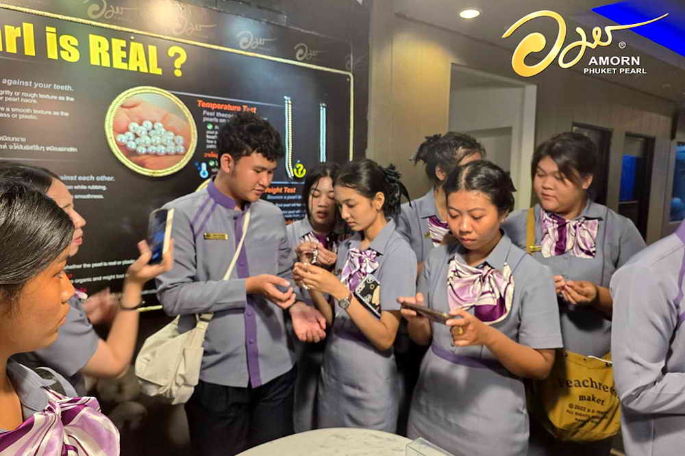 อมร ภูเก็ตเพิร์ล ให้การต้อนรับคณะอาจารย์และนักศึกษา แผนกวิชาการท่องเที่ยว วิทยาลัยเทคนิคกระบี่ ระดับประกาศนียบัตรวิชาชีพ ปวช3 ที่เข้ามาเยี่ยมชมศึกษาเรียนรู้ขั้นตอน การบริหาร และการจัดการ รวมไปจนถึง การเพาะเลี้ยงไข่มุกและการแปรรูปอัญมณีไข่มุก ณ โรงงานแปรรูปอัญมณีไข่มุก อมร ภูเก็ตเพิร์ล