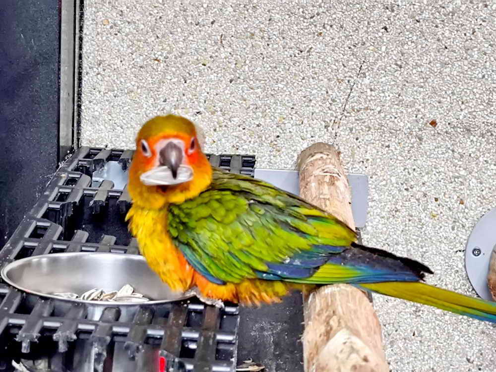 The Sun Conure is a playful, lively, and alert bird. It is very sociable and can be easily trained, especially if raised from a young age. This bird understands human language well, but its vocalizations can be quite loud and continuous.