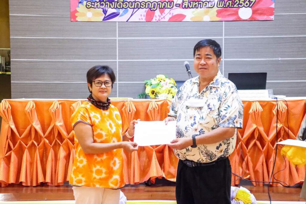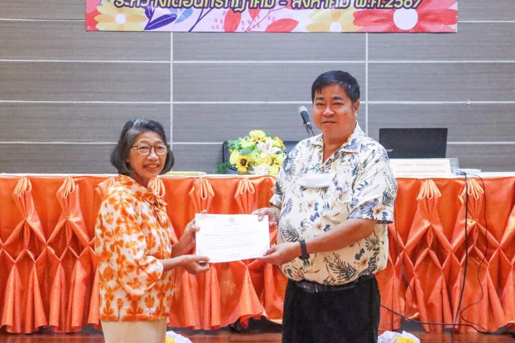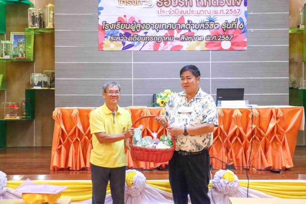 เมื่อวันที่ 20 สิงหาคม 2567 ที่ห้องประชุมระเงง ชั้น 3 สำนักงานเทศบาลตำบลวิชิต นายกรีฑา โชติวิชญ์พิพัฒน์ นายกเทศมนตรีตำบลวิชิต เป็นปนะธานมอบวุฒิบัตร และพิธีปิดโครงการร้อยรักถักดวงใจ ประจำปีงบประมาณ พ.ศ.2567 (โรงเรียนผู้สูงอายุเทศบาลตำบลวิชิต รุ่นที่ 6) โดยมีคณะผู้บริหาร สมาชิกสภาเทศบาล หัวหน้าส่วนราชการ และผู้เข้าร่วมอบรมในโครงการ