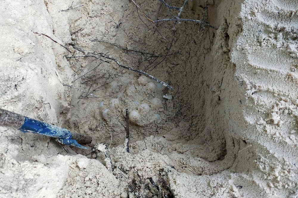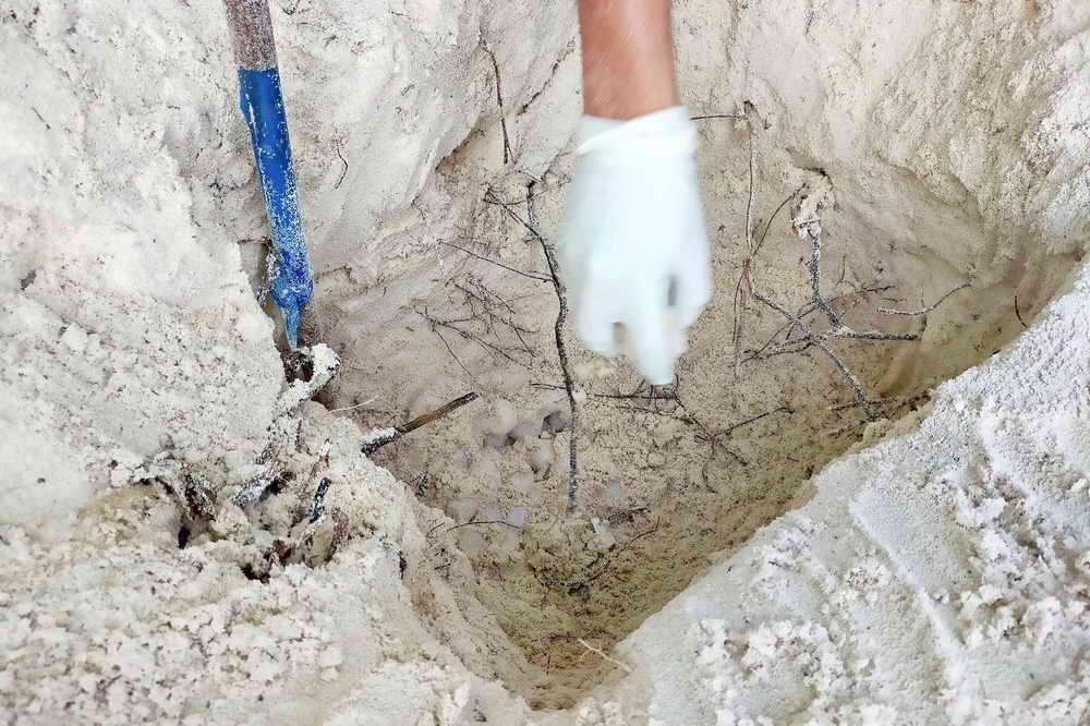เจ้าหน้าที่ฯ จึงได้ขุดเพื่อตรวจสอบขนาดและจำนวน ประกอบกับที่บริเวณดังกล่าว น้ำทะเลขึ้นถึง เจ้าหน้าที่มีความจำเป็นที่จะต้องเคลื่อนย้ายขาเต่า ไปอยู่ในที่ที่ปลอดภัย จึงได้ทำการขุดและนำไข่เต่าขึ้นมาทั้งหมด พบไข่เต่าจำนวน 115 ฟอง และเคลื่อนย้ายไข่เต่าไปยังจุดที่ปลอดภัย เพื่อทำการอนุบาลและนำปล่อยสู่ธรรมชาติต่อไป