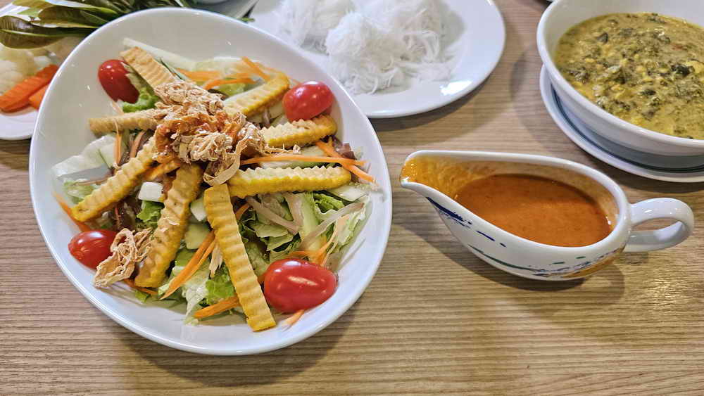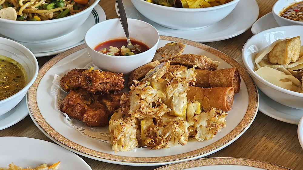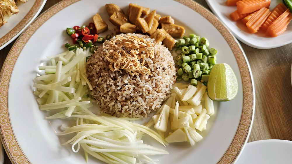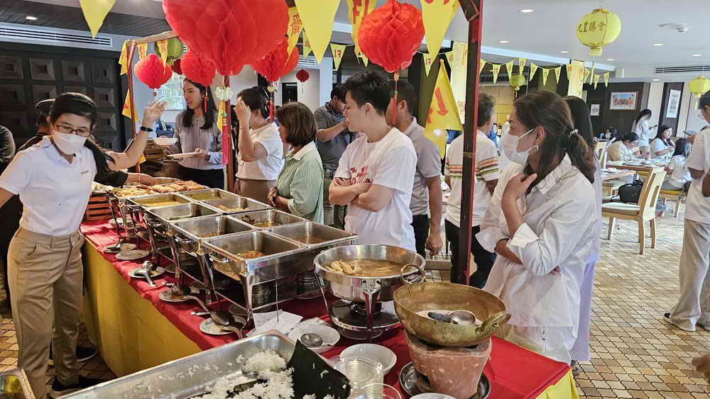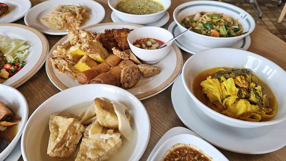 กับเมนูกับข้าวให้เลือกตามใจชอบ อาทิ หมูฮ้องเจ, อาจาด, ยำใหญ่เจ, แกงส้มผักรวม, ปลาทอดเครื่องเจ, รวมทอดเจ, หมี่หุ้นแกงปูเจ, แกงกะหรี่หมั่นโถวเจ, น้ำพริกกะปิเจ เป็นต้น ซึ่งจะมีการสลับสับเปลี่ยนเมนุกันทุกวัน เปิดให้บริการ ตั้งแต่ 11.00-21.00 น.