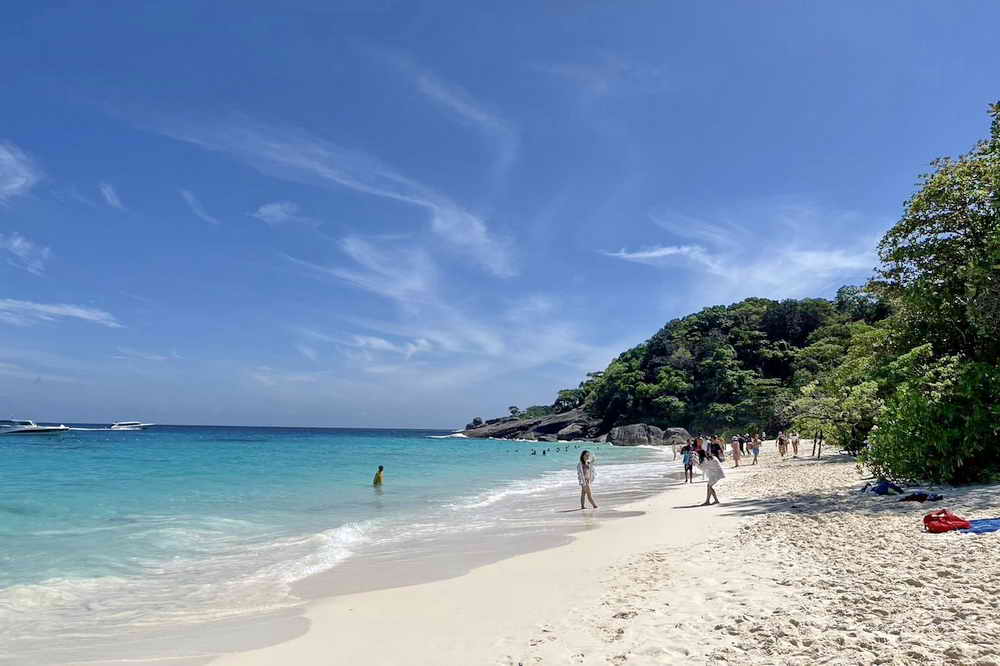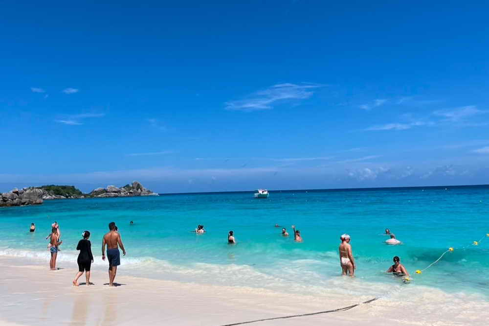 บรรยากาศการท่องเที่ยวที่หาดหน้า เกาะเมียง เขตอุทยานแห่งชาติหมู่เกาะสิมิลัน จ.พังงา ซึ่งมีนักท่องเที่ยวจากทั่วโลกเดินทางเข้ามาท่องเที่ยวชมความสวยงามของหาดทรายสีขาวละเอียด น้ำทะเลสีฟ้าสดใส