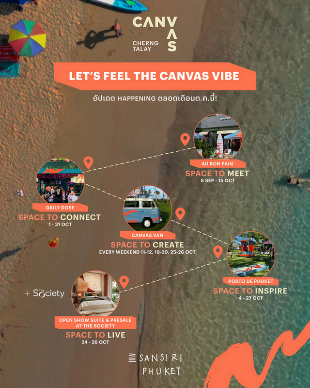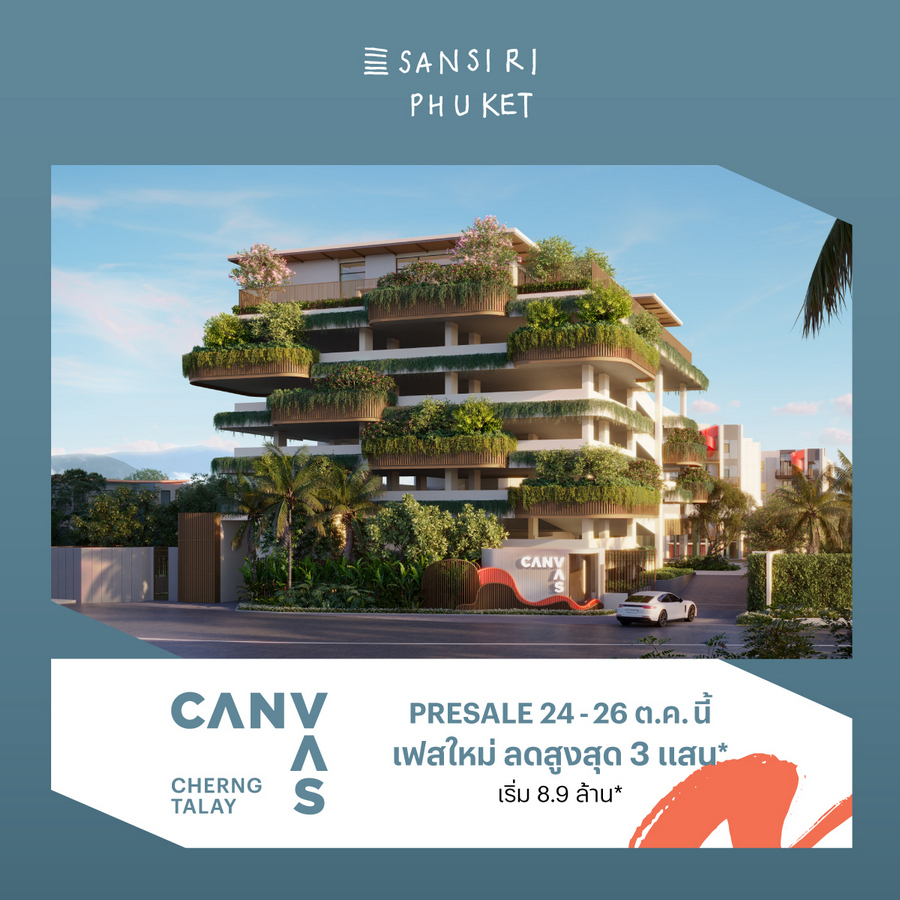 ใครอยู่ภูเก็ตช่วงนี้ต้องห้ามพลาด! กับ Feel the CANVAS VIBE : CANVAS Cherngtalay by Sansiri งาน Happening ที่แต่งแต้มสีสันในย่านเชิงทะเล ให้คึกคักรับไฮท์ซีซันของเกาะภูเก็ต พร้อมๆ กับทำความรู้จัก CANVAS Cherngtalay “แคนวาส เชิงทะเล” แบรนด์คอนโดมิเนียมใหม่ล่าสุดของแสนสิริในภูเก็ต ที่จะเติมเต็มทุกความต้องการ พร้อมแต่งแต้มชีวิตได้ไม่รู้จบ EVERY DESIRE FULFILLED ตลอดเดือน ตุลาคมนี้! ในโซนบางเทา – เชิงทะเล ภูเก็ต ย่านที่กำลังมาแรงที่สุดในภูเก็ต