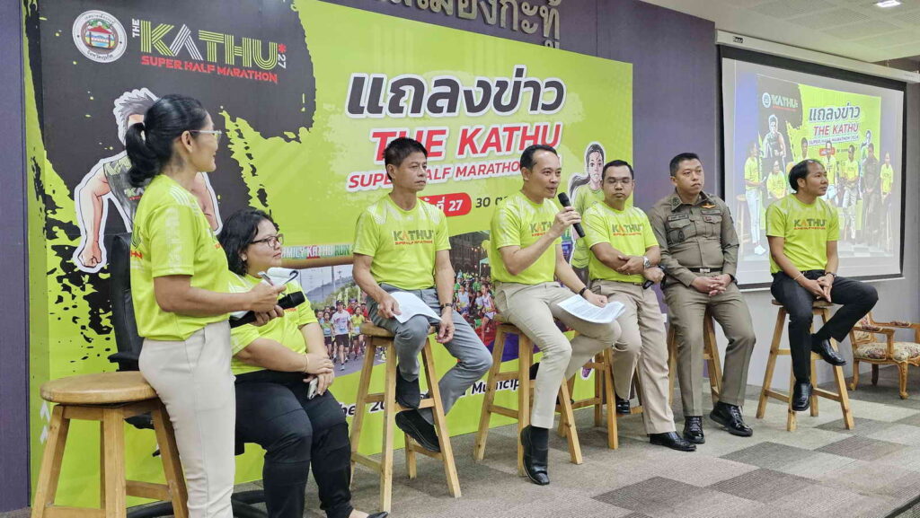 วันที่ 30 ตุลาคม 2567 ที่ห้องประชุมสภาเทศบาลเมืองกะทู้ อ.กะทู้ จ.ภูเก็ต นายสมาวิษฎ์ สุพรรณไพ รองผู้ว่าราชการจังหวัดภูเก็ต พร้อมด้วยนายวรรณยุทธิ์ สุทธิกุล นายกเทศมนตรีเมืองกะทู้,นายธรรมรงค์ ช่วยอักษร ปลัดอาวุโสอำเภอกะทู้, นางรัชดาภรณ์ โออิน ท่องเที่ยวและกีฬาจังหวัดภูเก็ต, พ.ต.อ.รุ่งฤทธิ์ รัตนภักดี ผู้กำกับการสถานีตำรวจภูธรกะทู้ และนายพงษ์พันธ์ ทองพัฒน์ หัวหน้าศูนย์นเรนทร อันดามัน ร่วมแถลงข่าวการจัดแข่งขันวิ่ง “กะทู้ ซุปเปอร์ ฮาล์ฟ มาราธอน ครั้งที่ 27” ซึ่งกำหนดจะจัดขึ้นในวันที่ 8 ธันวาคม 2567