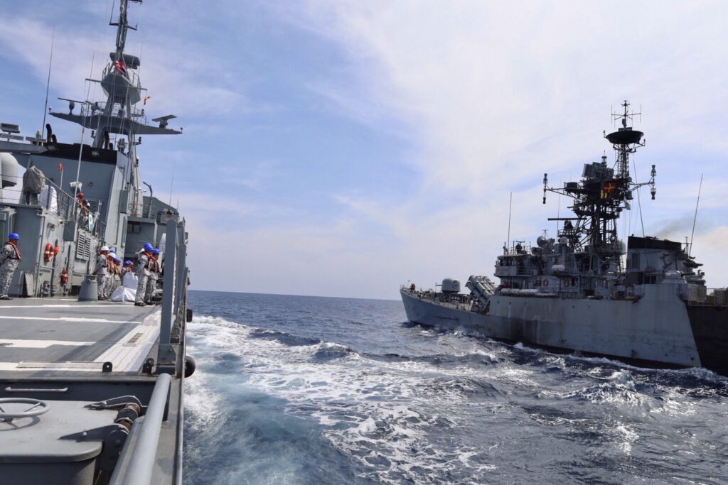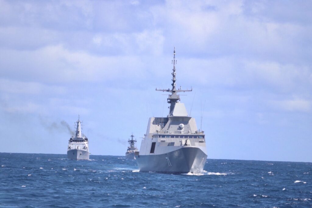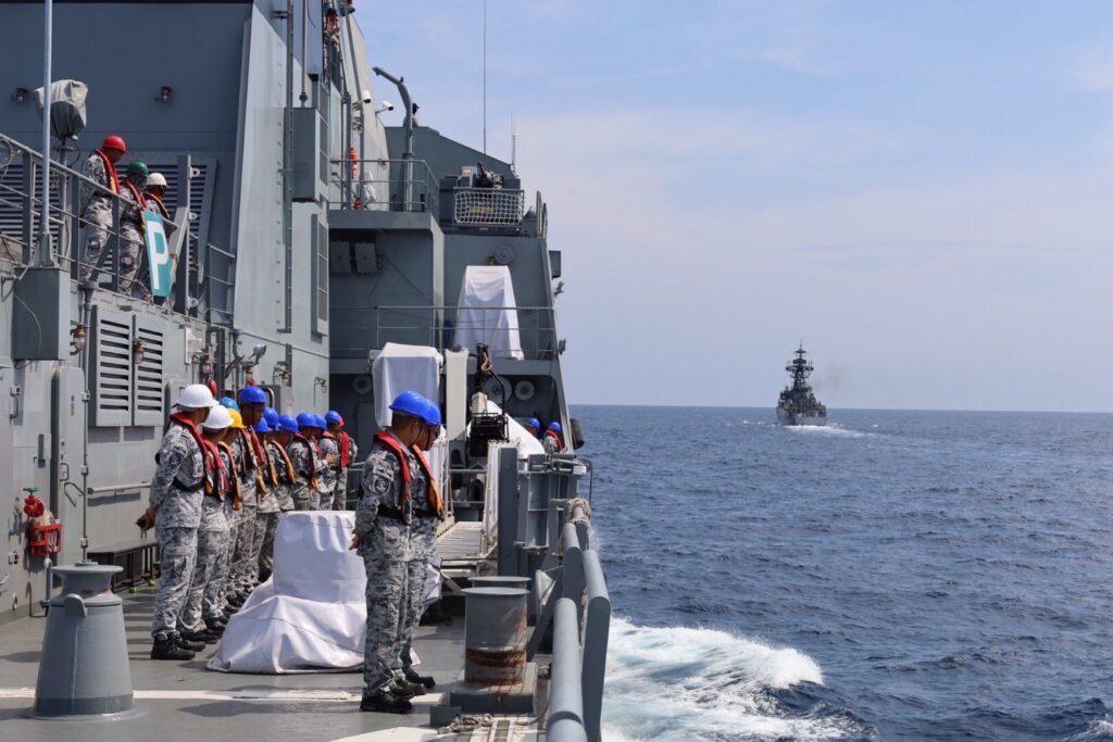 โดยมีหัวข้อการฝึก ประกอบด้วย การฝึกแปรกระบวน การฝึกติดตามเป้าเรือสินค้า การฝึกตรวจค้น การร่วมสังเกตการณ์การฝึกยิงเป้าทางอากาศ การลาดตระเวนแลกเปลี่ยนเป้าในพื้นที่รับผิดชอบ การร่วมสังเกตการณ์การฝึกยิงเป้าพื้นน้ำ การฝึกนำเรือแล่นผ่าน