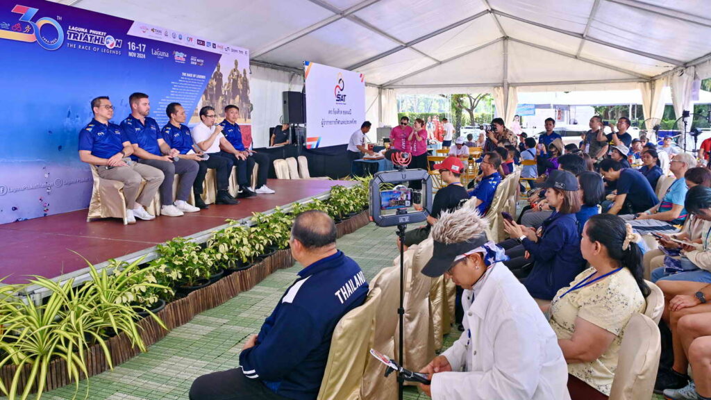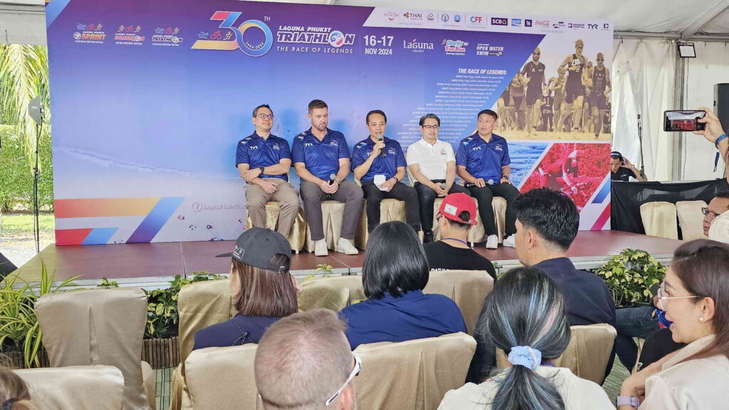 เมื่อวันที่ 16 พฤศจิกายน 2567 ที่บริเวณลากูน่าโกรฟ ลากูน่า ภูเก็ต นายสมาวิษฎ์ สุพรรณไพ รองผู้ว่าราชการจังหวัดภูเก็ตนายก้องศักด ยอดมณี ผู้ว่าการการกีฬาแห่งประเทศไทย พร้อมด้วย คุณพอล วิลสัน (Paul Wilson) รองประธานและรองกรรมการผู้จัดการ ลากูน่า ภูเก็ต ได้ร่วมกันแถลงข่าวการจัดการแข่งขัน “ลากูน่าภูเก็ตไตรกีฬา ครั้งที่ 30 ประจำปี 2567” (Laguna Phuket Triathlon 2024)
