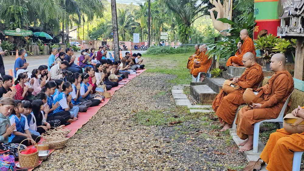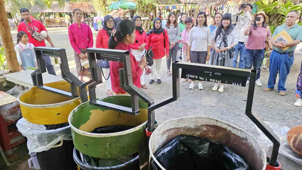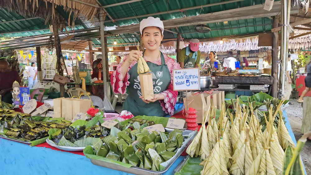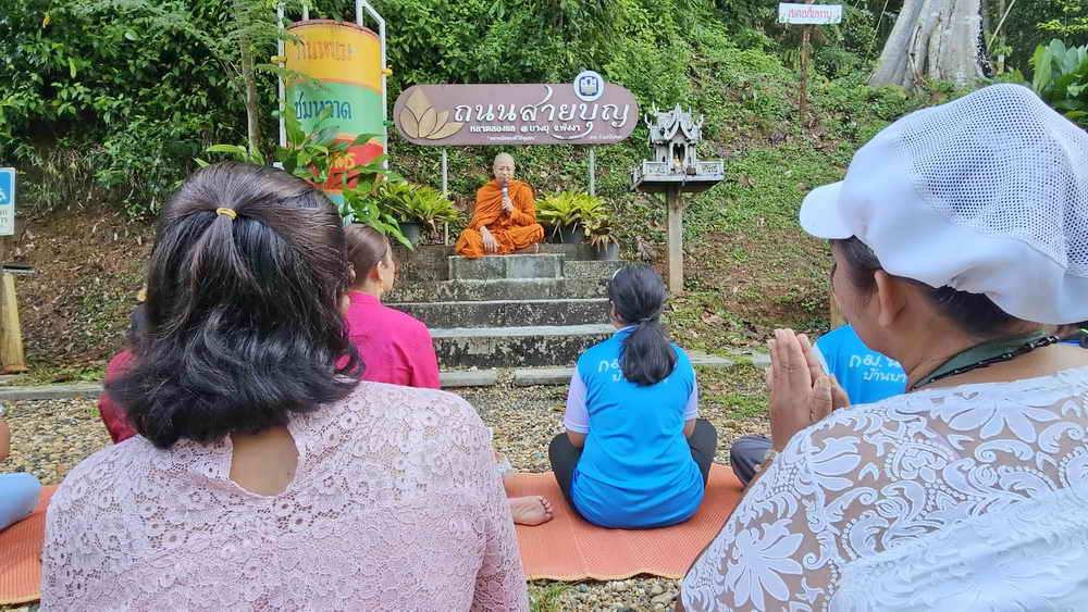 เริ่มต้นกิจกรรมวันแรก มด้วยการสัมผัสวิถีชีวิตชุมชน หลาดลองแล ต.บางนุ อ.ตะกั่วทุ่ง จ.พังงา ซึ่งเป็นตลาดที่รวมสินค้าชุมชน อาหารพื้นเมืองและวัฒนธรรมท้องถิ่น ผลผลิตและสินค้าทางการเกษตร และยังเป็นส่วนหนึ่งในการรักษ์โลกด้วยการลดการใช้ถุงพลาสติกในการหุ้มห่ออาหาร ด้วยการนำวัสดุธรรมชาติในท้องถิ่น เช่น ใบตอง มาใช้แทน หรือหากจะใช้ก็เท่าที่จำเป็น รวมทั้งยังมีสถานีคัดแยกขยะ นับเป็นความโชดคีที่ผู้เข้าร่วมกิจกรรมได้ทำบุญตักบาตรบริเวณหน้าตลาดฯ